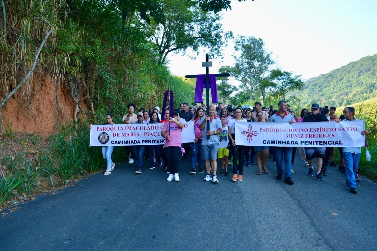 Milhares de fiéis católicos participaram da 16ª “Caminhada Penitencial”, nas ruas de Muniz Freire. O evento organizado pela Paróquia Imaculado Coração de Maria, de Piaçu, também mobilizou centenas de peregrinos da Paróquia Divino Espírito Santo, no mesmo município.