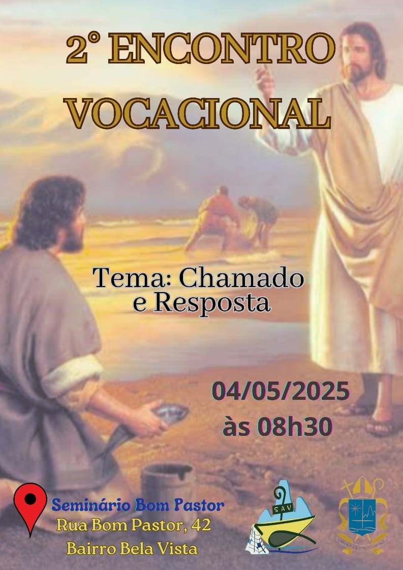 Serviço de Animação Vocacional (SAV) da Diocese de Cachoeiro de Itapemirim realiza no domingo, 04 de maio, o seu 2º Encontro Vocacional de 2025. Inscrições AQUI