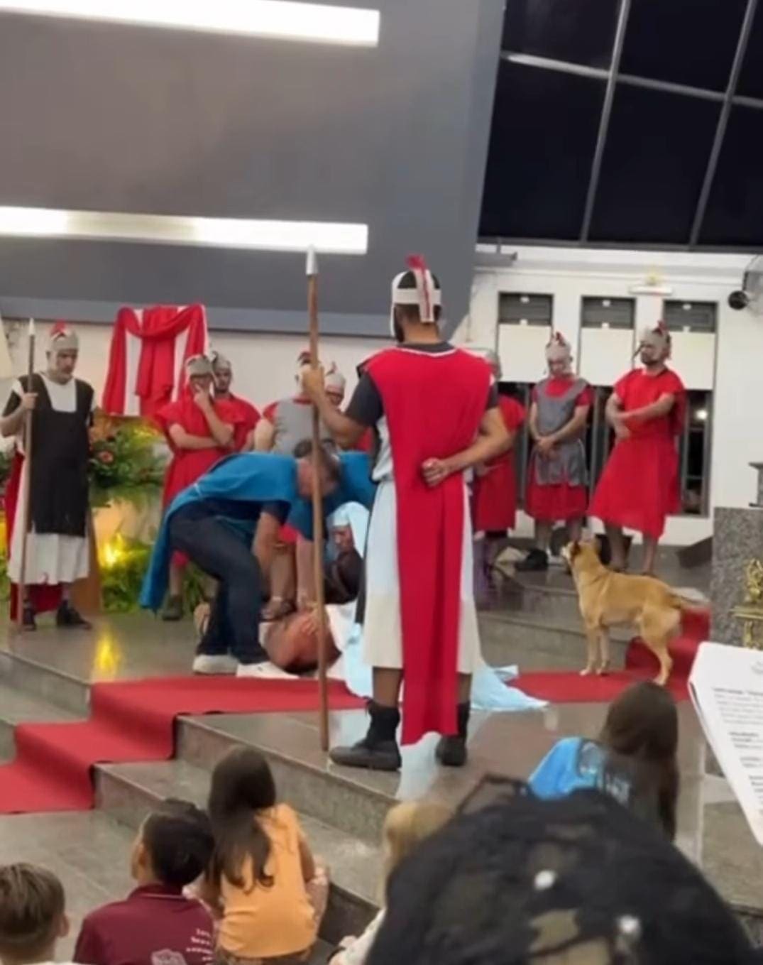 Nesta Sexta-Feira Santa, 18 de abril, a comunidade Santa Teresinha do Menino Jesus, pertencente a Paróquia São Pedro Apóstolo, em Venda Nova do Imigrante, região serrana, teve um momento inusitado e emocionante durante a tradicional encenação da Via-Sacra: um adorável cachorrinho caramelo, aparentemente de rua, se aproximou do ato e, demonstrou uma conexão inesperada com a encenação da Paixão de Cristo.