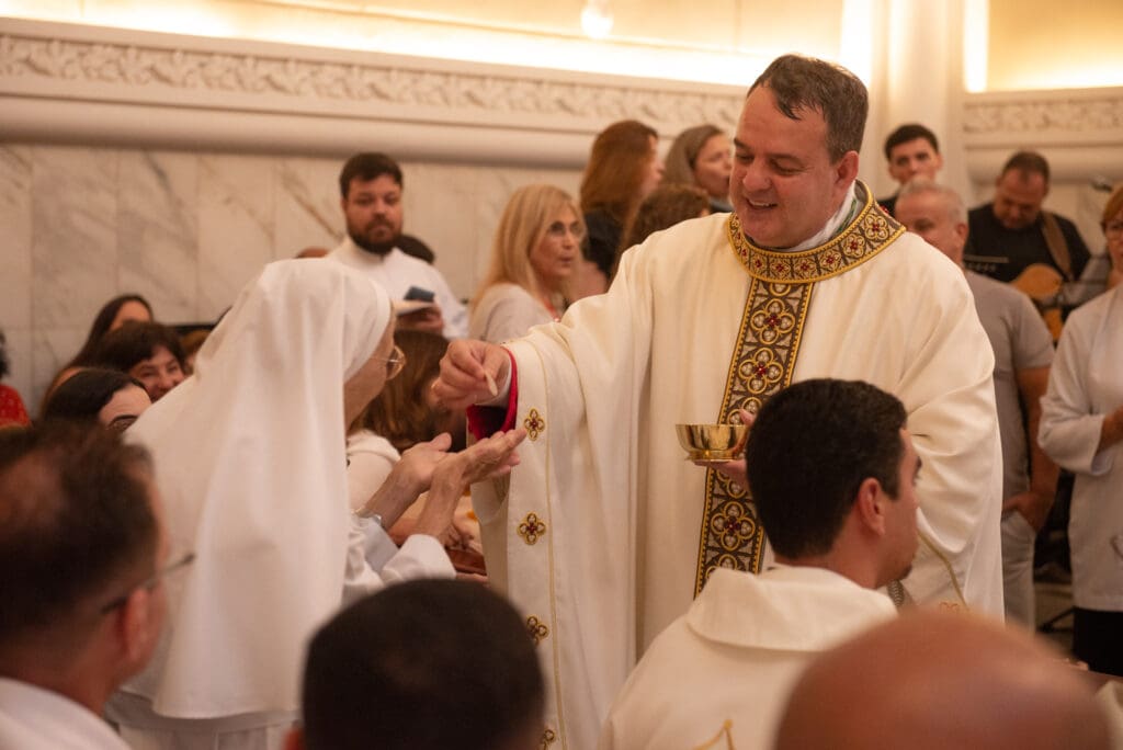 Irmã Otilia recebe comunhão de Dom Joselito Ramalho Nogueira (27/04/25).