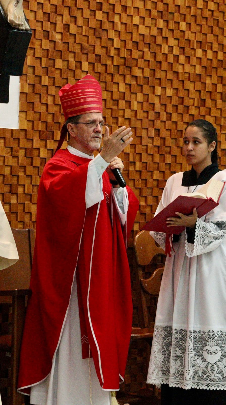 Durante a homilia, o Bispo se dirigiu aos Crismandos, dizendo que “todos nós somos pastores, e não apenas o Papa, o Bispo e o Padre. Por isso, também temos a missão de pastorear, de ser para o outro essa presença de Cristo e de ter compaixão pelo nosso irmão! Enquanto cristãos, não podemos fazer intrigas, contendas e inimizades dentro da Igreja; devemos caminhar juntos sempre em busca do bem”, afirmou. A Santa Missa foi concelebrada pelo pároco local, padre Pedro Félix Bassini.