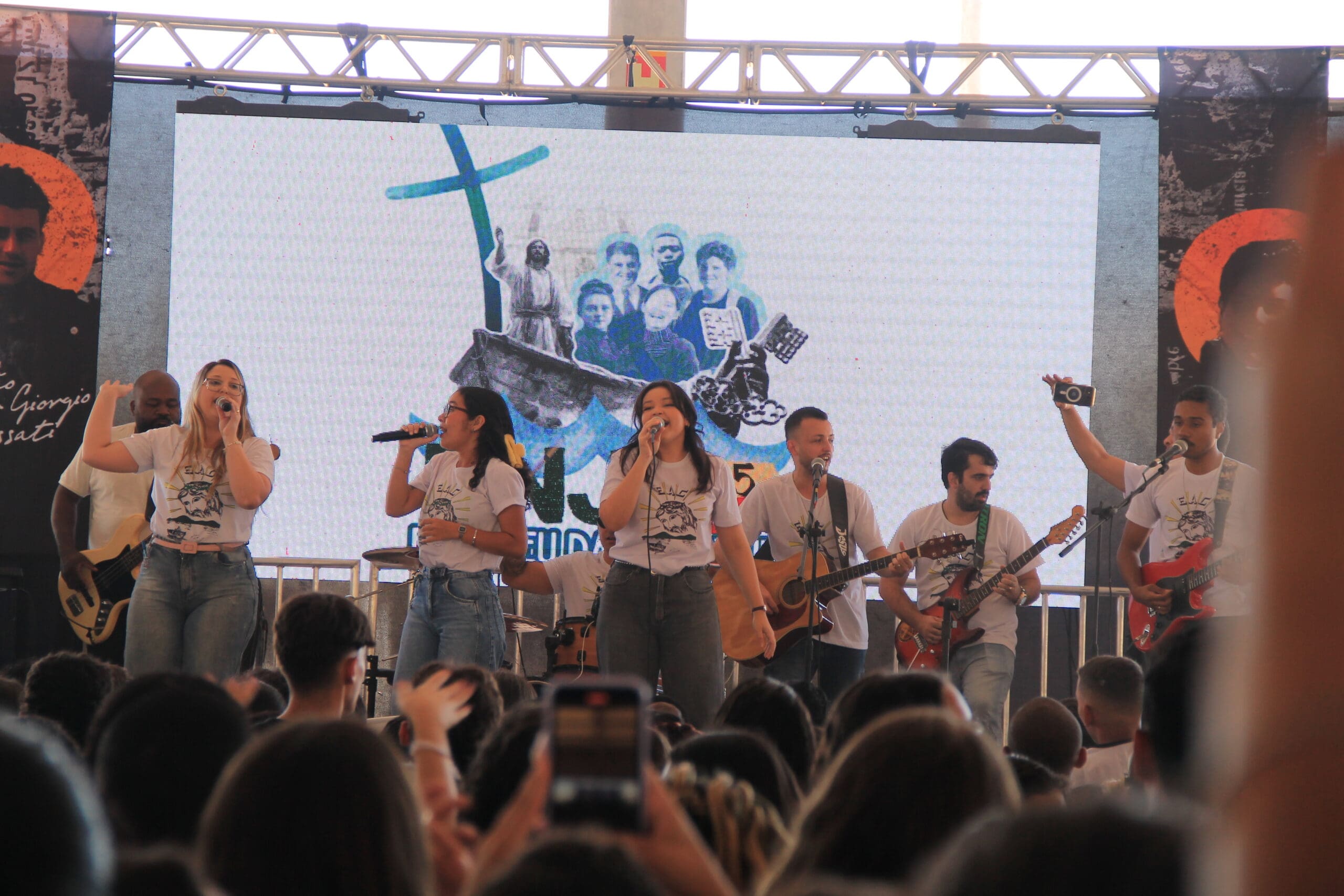 Logo após a chegada, houve uma fala de abertura com reflexão sobre o tema central do DNJ e do Jubileu da Juventude conduzida pelo padre Juliano Ribeiro de Almeida. Às 11h, o palco foi tomado pela primeira atração musical, a banda EAC do IBC, que trouxe momentos de louvor e animação.
