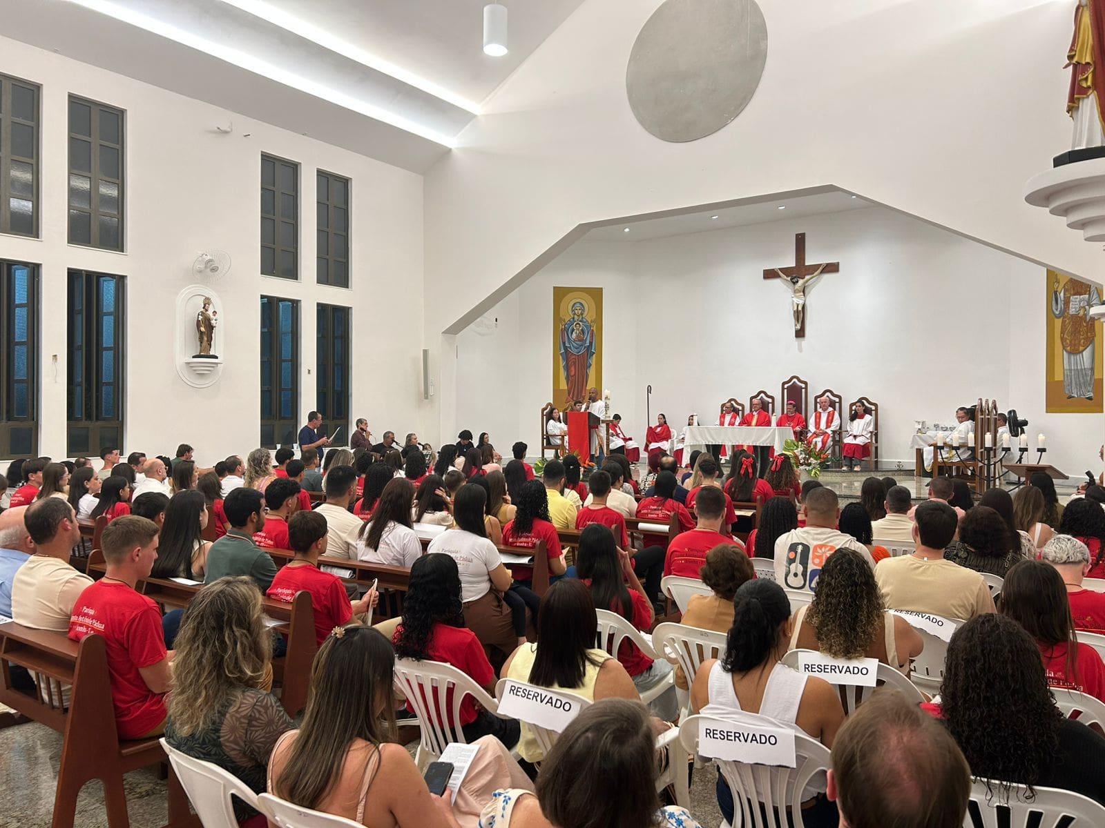 O templo ficou completamente tomado pelos crismandos, padrinhos, familiares e fiéis, que participaram ativamente da celebração. Durante a homilia, Dom Luiz destacou o compromisso assumido por cada jovem ao receber o sacramento, resaltando a responsabilidade de testemunhar a fé no cotidiano.