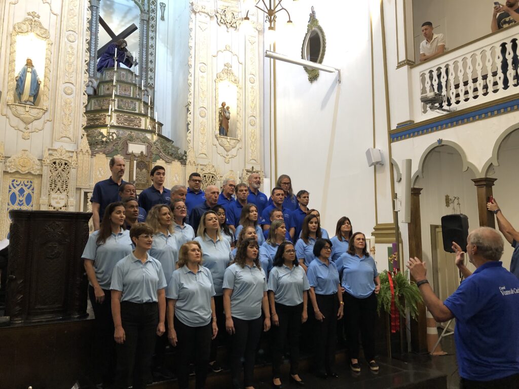 O violão, teclado, percussão e flauta, cuidadosamente distribuídos no altar, cativaram a atenção do público, que se viu envolvido pela apresentação extraordinária. O pároco, Pe. José Carlos Ferreira da Silva expressou alegria ao receber o coral que conheceu durante sua posse na Academia Cachoeirense de Letras (ACL), no último dia 22 de novembro.