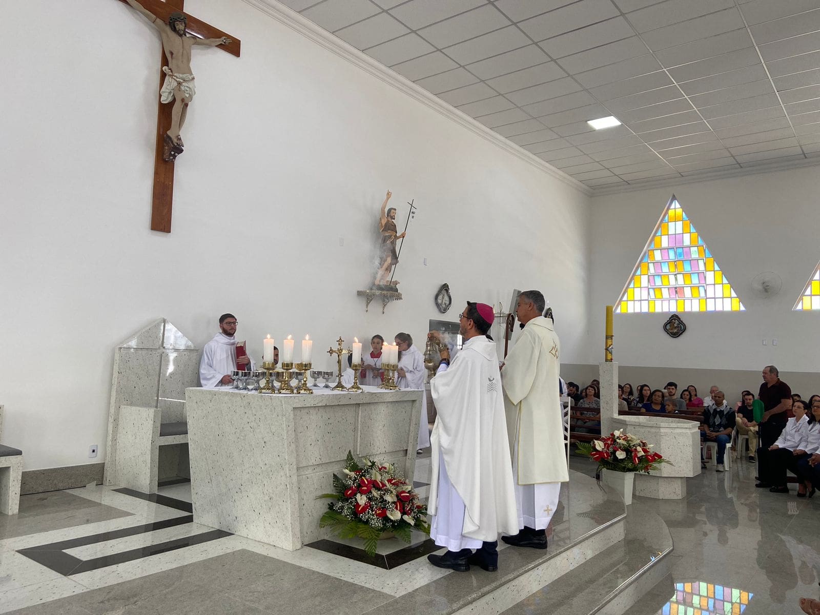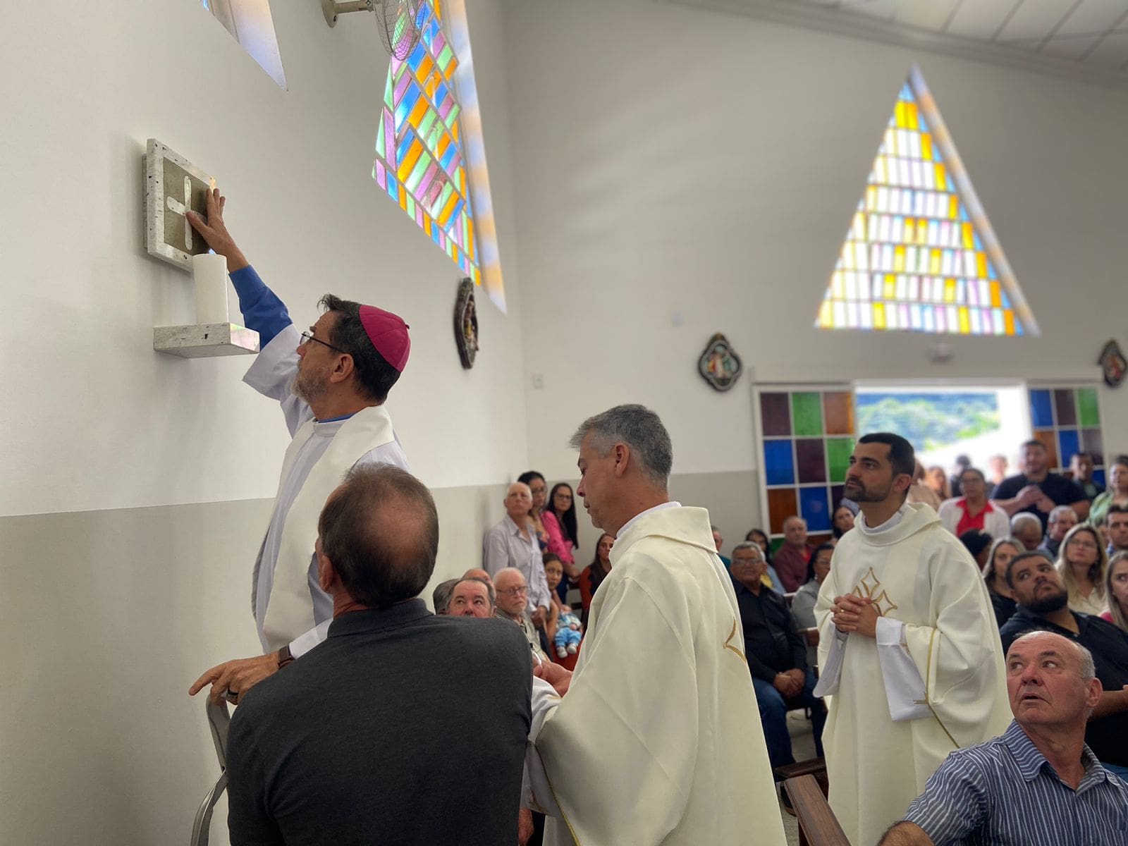 O Bispo Diocesano de Cachoeiro de Itapemirim, Dom Luiz Fernando Lisboa CP, presidiu na manhã do último domingo, 23 de junho, uma celebração toda especial na Área Pastoral Serrana (Regional III), onde realizou a Consagração do Altar da igreja da Comunidade São João Viçosa, localizada na Paróquia São Pedro Apóstolo, em Venda Nova do Imigrante. Concelebrando pelo pároco Cristian Vieira Batista, o rito manifesta a dignidade da igreja. A cerimônia religiosa foi auxiliada pelo diácono permanente Carlos Gilberto Caldonho Nascimento e Sebastião Nogueira, candidato ao diaconato permanente.