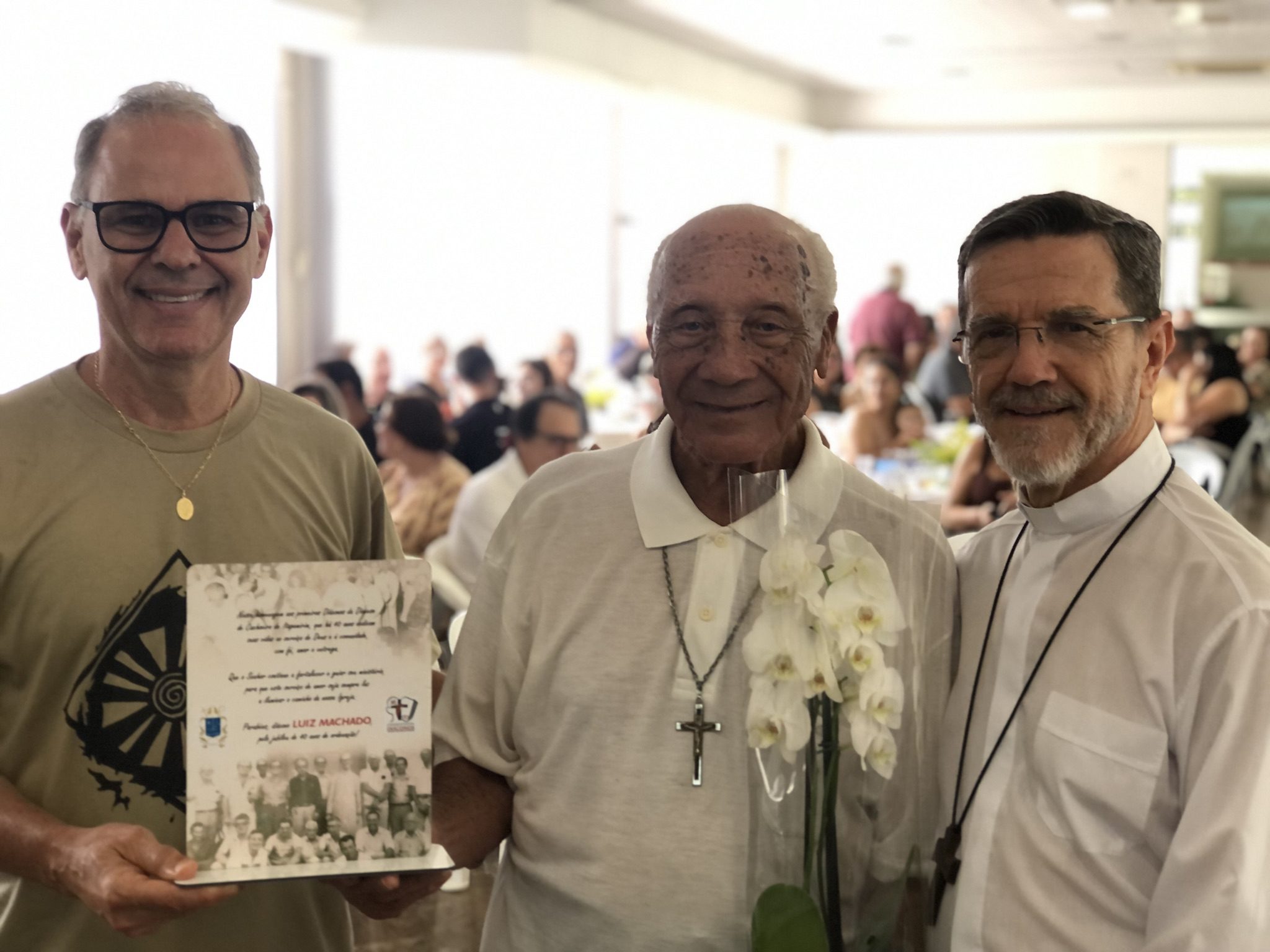 No último sábado, 30 de novembro, o Bispo Diocesano Dom Luiz Fernando Lisboa participou de um encontro de partilha e confraternização com os Diáconos Permanentes e suas esposas. O evento aconteceu no Salão Paroquial da Paróquia Nosso Senhor dos Passos (Matriz Velha), localizado no bairro Independência, em Cachoeiro de Itapemirim. O encontro teve como foco o amor a Deus e o SIM ao serviço da missão confiada pela Igreja, e foi marcado por momentos de oração, reflexão e homenagens aos 40 anos de ordenação dos primeiros Diáconos Permanentes da Diocese de Cachoeiro.