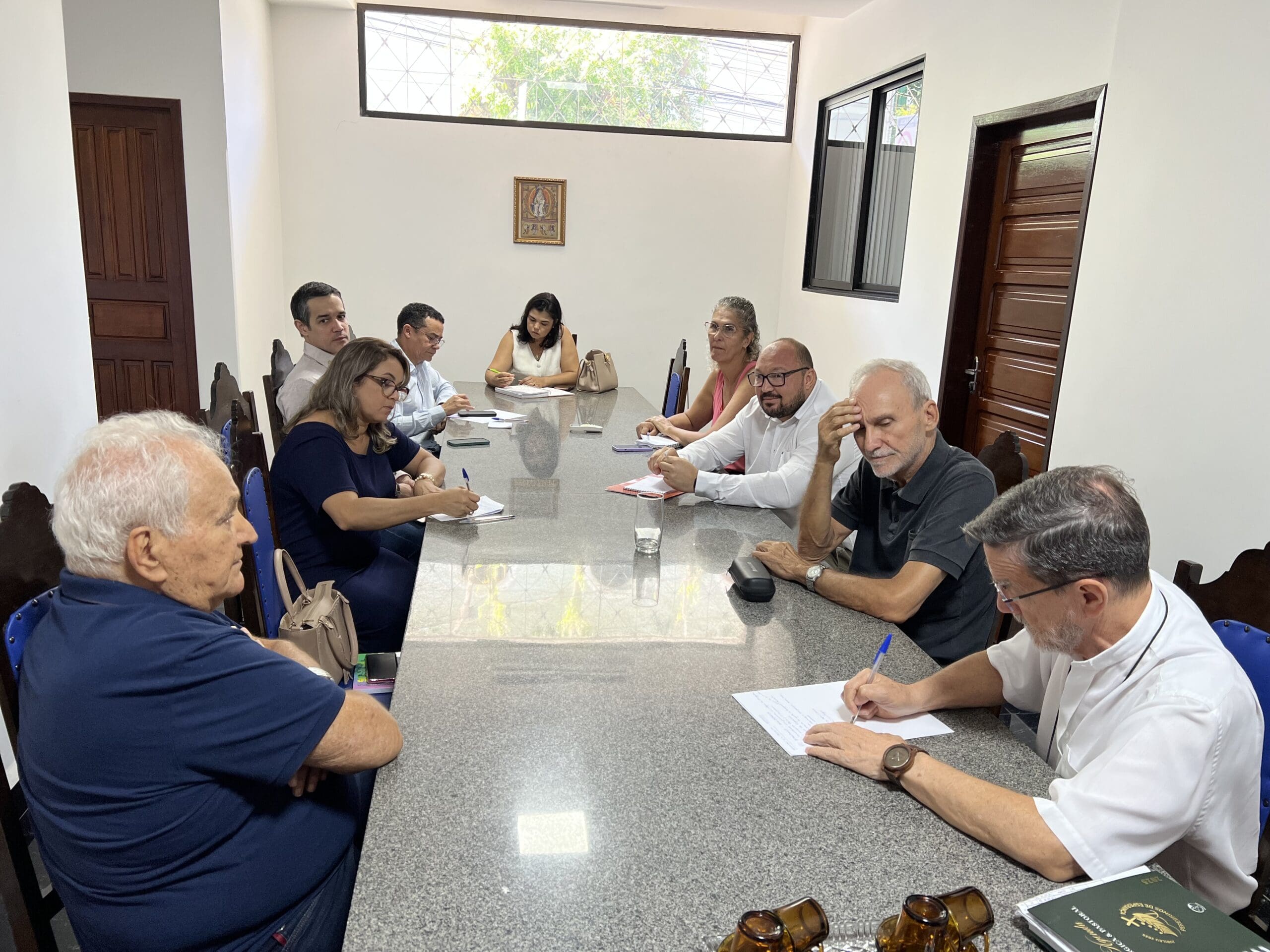 O bispo diocesano, Dom Luiz Fernando Lisboa, CP, e os Vigários Episcopais padre João Batista Maroni (Ação Pastoral) e padre José Carlos Ferreira da Silva (Comunicação) receberam, em reunião, na manhã desta terça-feira, 25 de março, o prefeito Theodorico de Assis Ferraço e assessores. O encontro também reuniu a presidente da Cáritas Diocesana, Ana Claudia da Silva e os coordenadores do 16° Intereclesial das CEBs: padre Wosley Guimarães Pansini e Sirley Camiletti.