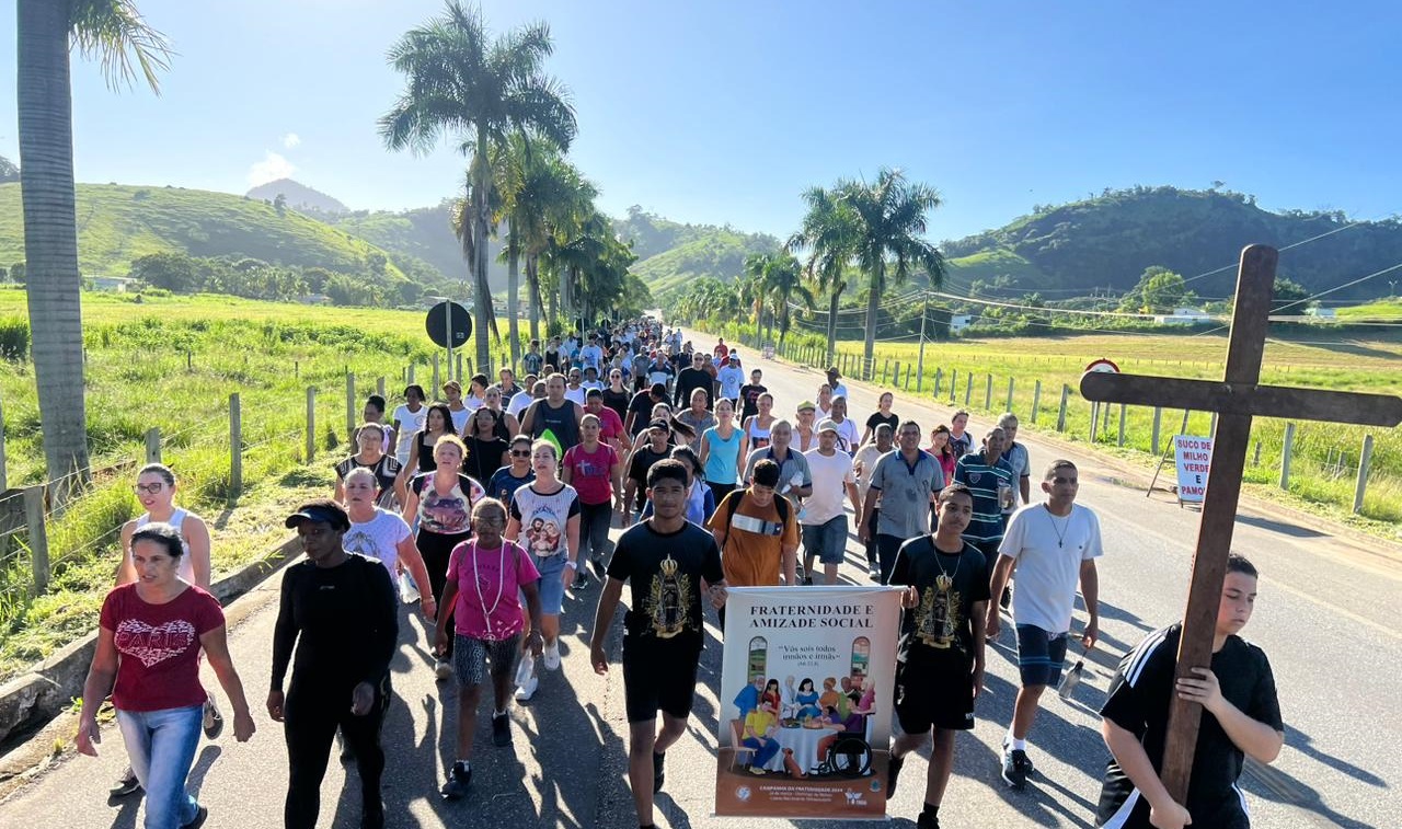 Rive. Na Paróquia Nossa da Penha, a caminhada teve início no pátio da Matriz, passando pelo centro de Alegre e, seguindo pela BR 482 até o ginásio de esportes, um trajeto de aproximadamente 12 km. Já os fiéis da Paróquia Nossa Senhora Auxiliadora, Jerônimo Monteiro, saíram às 05h30 da matriz. No percurso aconteceram paradas para reflexão e momentos de oração.