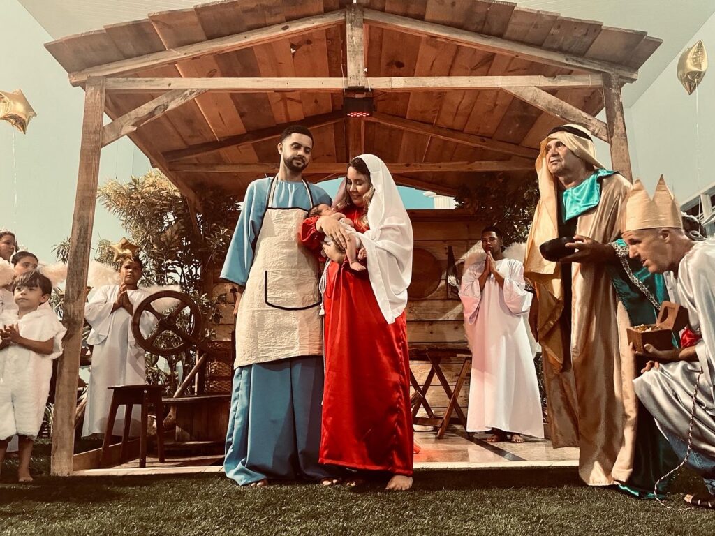 A apresentação contou com a contribuição de voluntários das comunidades Eclesiais de Base, Nossa Senhora dos Navegantes e São Sebastião e retratou o nascimento do Menino Jesus, contado através de encenação, dança e música.