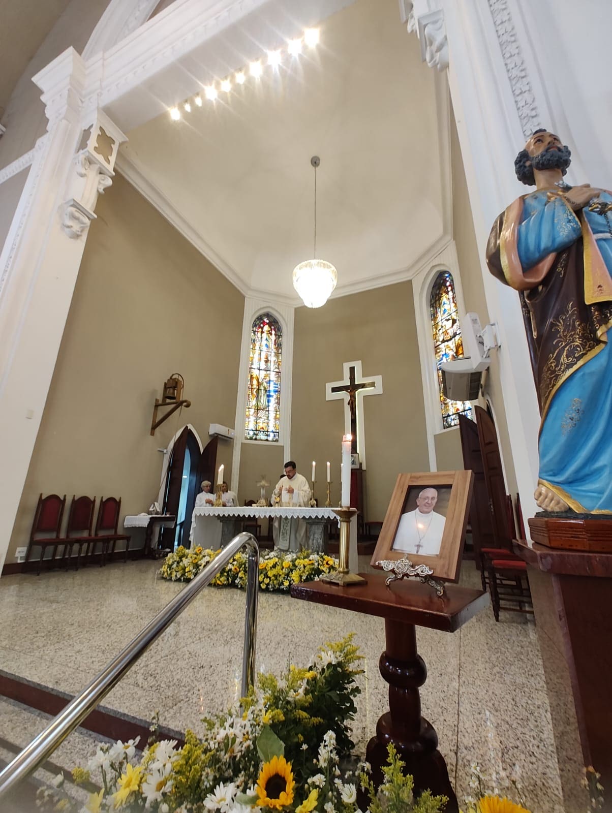A Catedral de São Pedro, no centro de Cachoeiro de Itapemirim, recebeu, nesta manhã de segunda-feira, 21 de abril, uma missa em sufrágio pela alma do Papa Francisco, que morreu, aos 88 anos, em Roma.