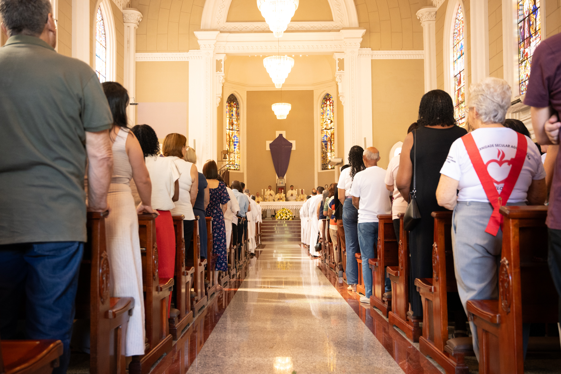 Ao final da celebração, representantes das oito áreas pastorais da diocese receberam os kits contendo os óleos abençoados, que serão distribuídos às paróquias e utilizados nas celebrações sacramentais ao longo de todo o ano, até a próxima Missa Crismal.