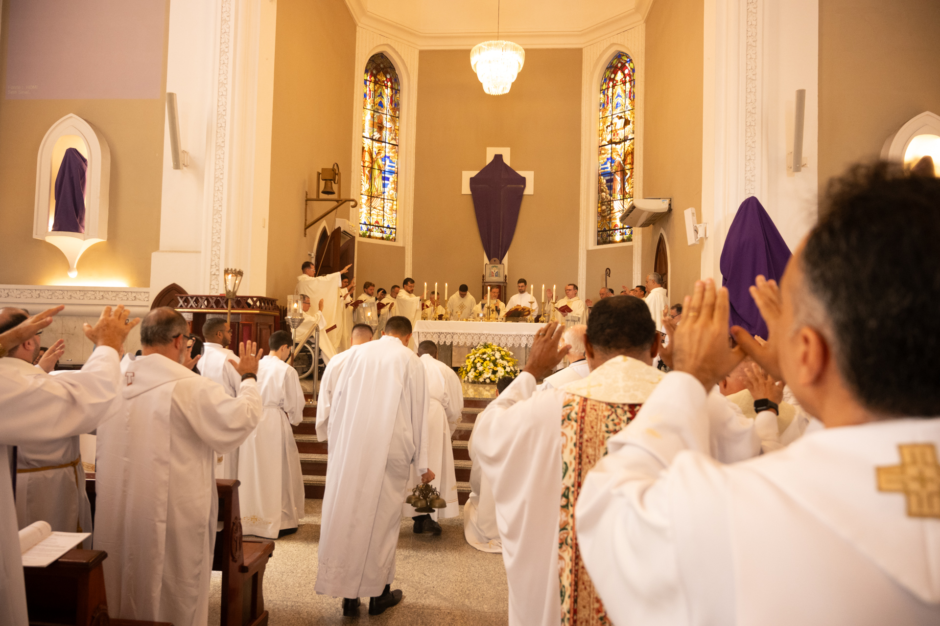 Fiéis católicos lotaram a Catedral de São Pedro, em Cachoeiro de Itapemirim, na manhã da Quinta-Feira Santa, 02 de abril, para participar da tradicional Missa dos Santos Óleos, também conhecida como Missa do Crisma. Considerada uma das celebrações mais importantes do calendário litúrgico da Igreja Católica, a cerimônia reuniu centenas de fiéis e mais de 80 padres, religiosos e diáconos que atuam nos 27 municípios do Sul do Espírito Santo, reforçando a comunhão entre o bispo, o clero e o povo leigo durante a Semana Santa.