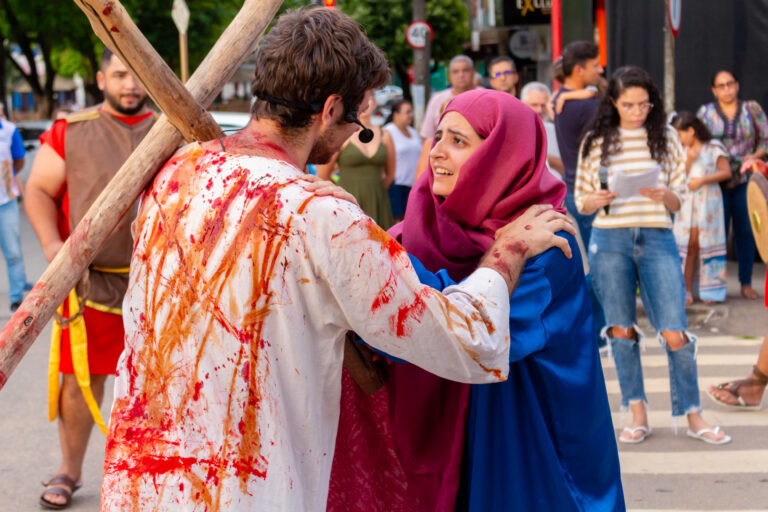 Fiéis acompanham encenação da Via Sacra em Alegre