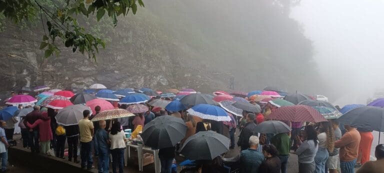 Debaixo de chuva, centenas de fiéis celebram o Dia Mundial da Água em Piaçu