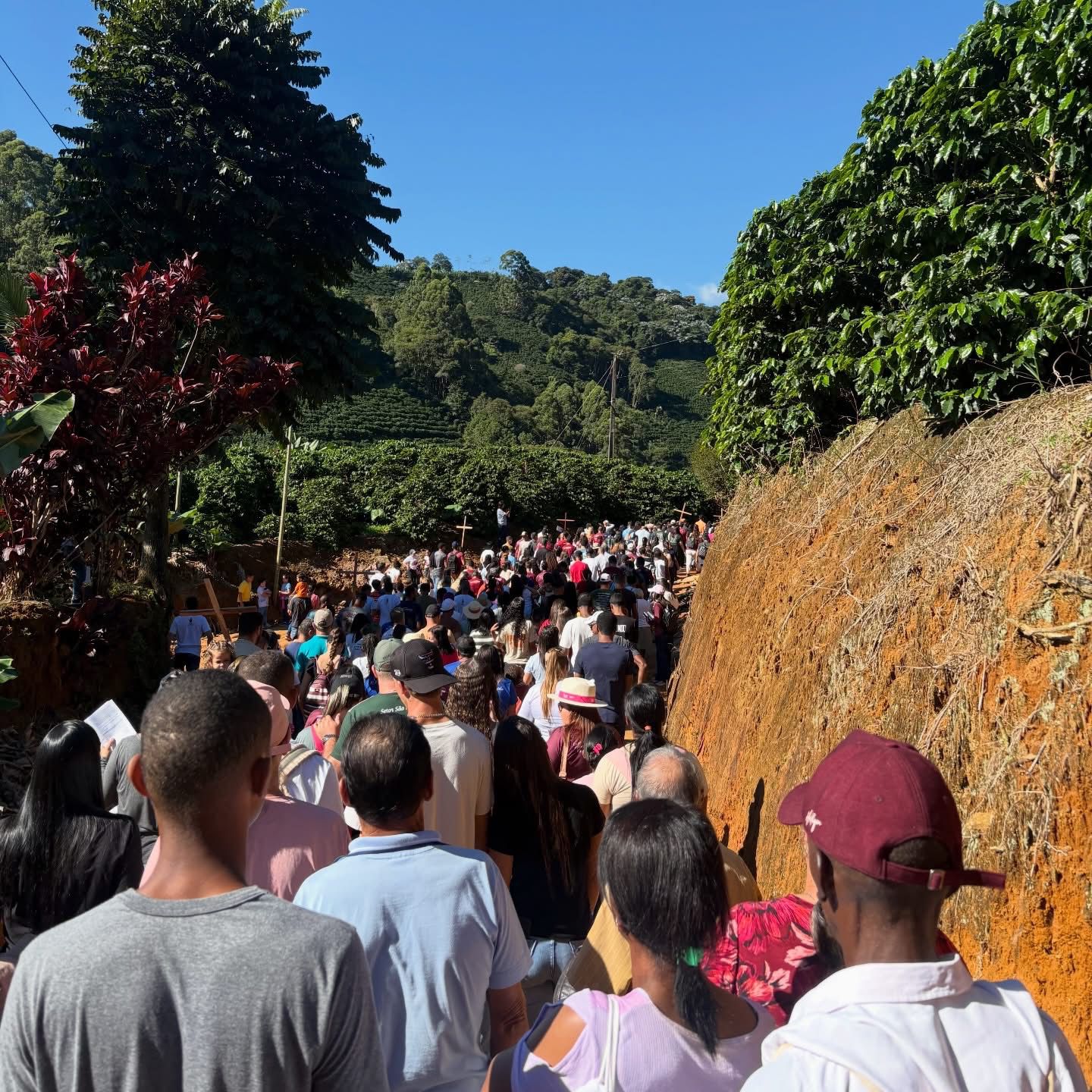 A concentração teve início às 7h, na comunidade Fazenda Alegria, cuja padroeira é Nossa Senhora da Penha. De lá, os participantes seguiram em caminhada até a comunidade São José Operário, localizada em Pouso Alto, vivenciando ao longo do percurso momentos de oração e meditação.