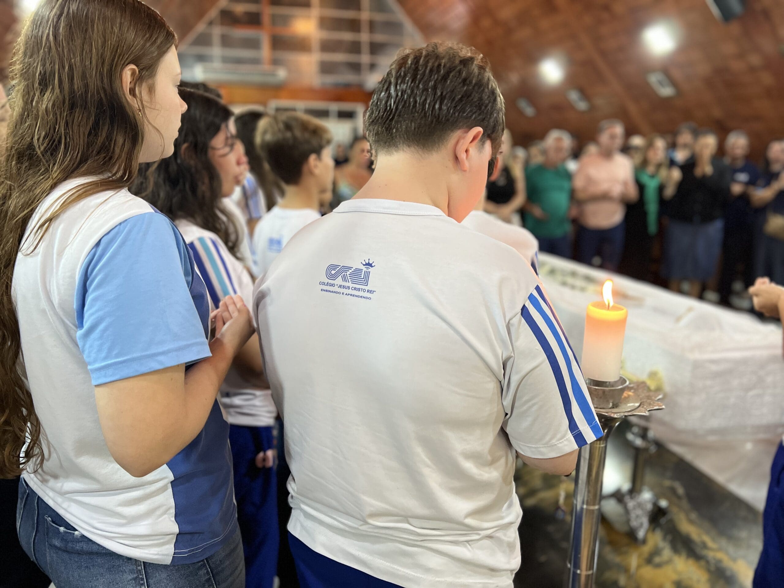 Na noite desta terça-feira, 27 de maio, o Colégio Jesus Cristo Rei se uniu em emoção e fé para prestar uma última homenagem à Irmã Otília, figura querida e inesquecível para toda a comunidade escolar. A homenagem, marcada por orações, lembranças e carinho, aconteceu em clima de despedida, mas também de profunda gratidão por tudo o que a religiosa representou para gerações de alunos, professores e colaboradores da instituição.