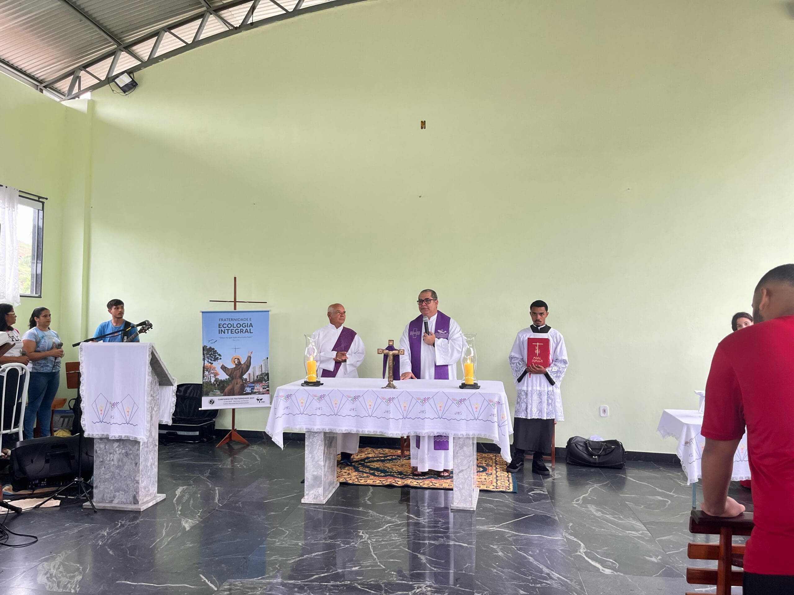 O Frei Cleber, pároco local, presidiu a Celebração Eucarística de encerramento da Caminhada Penitencial, na quadra localizada na área externa da comunidade. Refletindo o Evangelho do dia (Jo 8,1-11), o religioso recordou a promessa de Jesus de conceder a honra da glória eterna àqueles dispostos a servi-lo.
