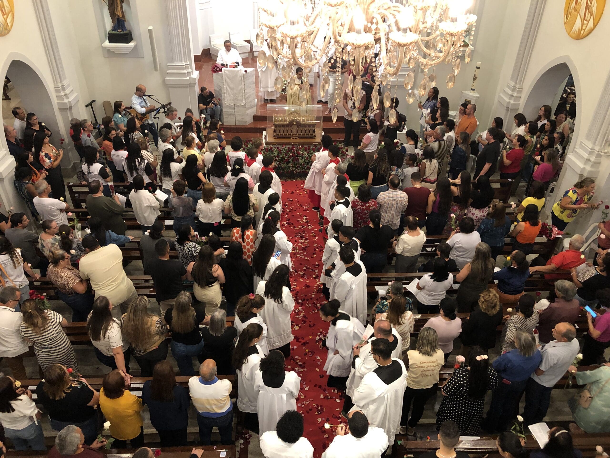 Centenas de fiéis lotaram as ruas de Mimoso do Sul, no final da tarde desta segunda-feira, 08 de julho, para acompanhar a chegada das relíquias de Santa Teresinha do Menino Jesus. Vindos da Basílica de Sainte-Thérèse de Lisieux, na França, os ossos da religiosa estão pela segunda vez em solo capixaba — a primeira visita foi em 1998.