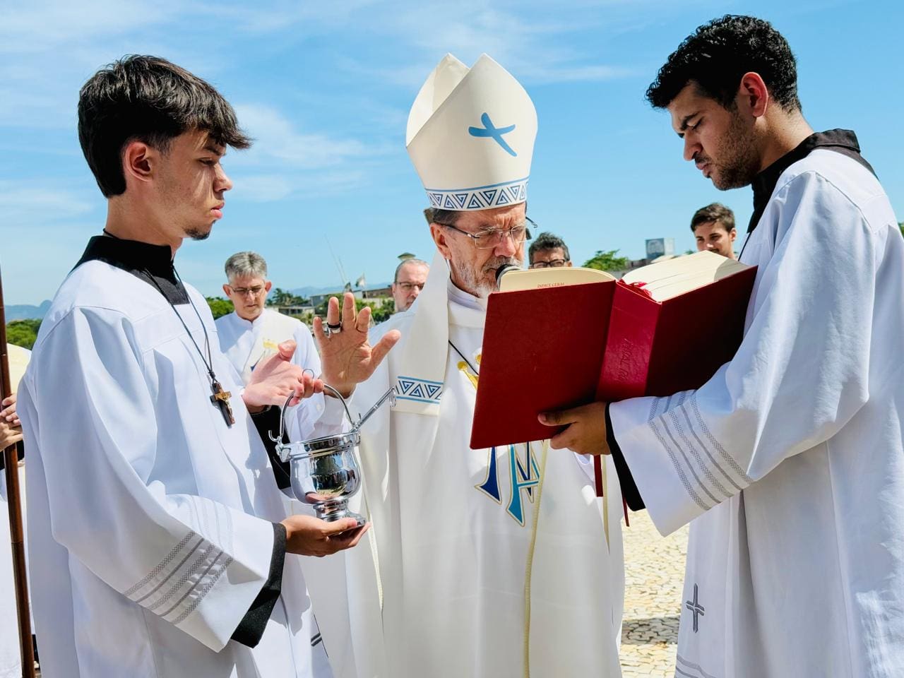 “Hoje é dia da Apresentação do Senhor, mas também de Nossa Senhora dos Navegantes. No Brasil, são muitos os lugares que celebram essa linda festa. É uma festividade muito importante, pois trata da estrela da evangelização, a estrela do mar: Nossa Virgem Maria”, comentou o prelado.