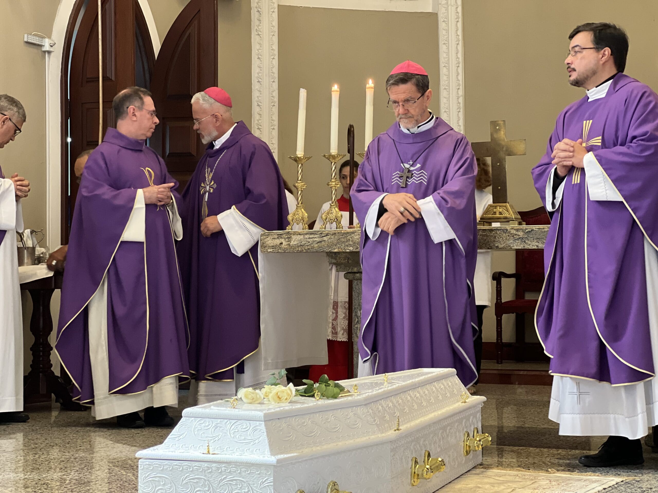 Um momento de grande simbolismo foi o cortejo interno dentro da Catedral: primeiros os familiares, depois as irmãs da Congregação e, por fim, funcionários da Santa Casa de Misericórdia depositaram flores sobre a urna.