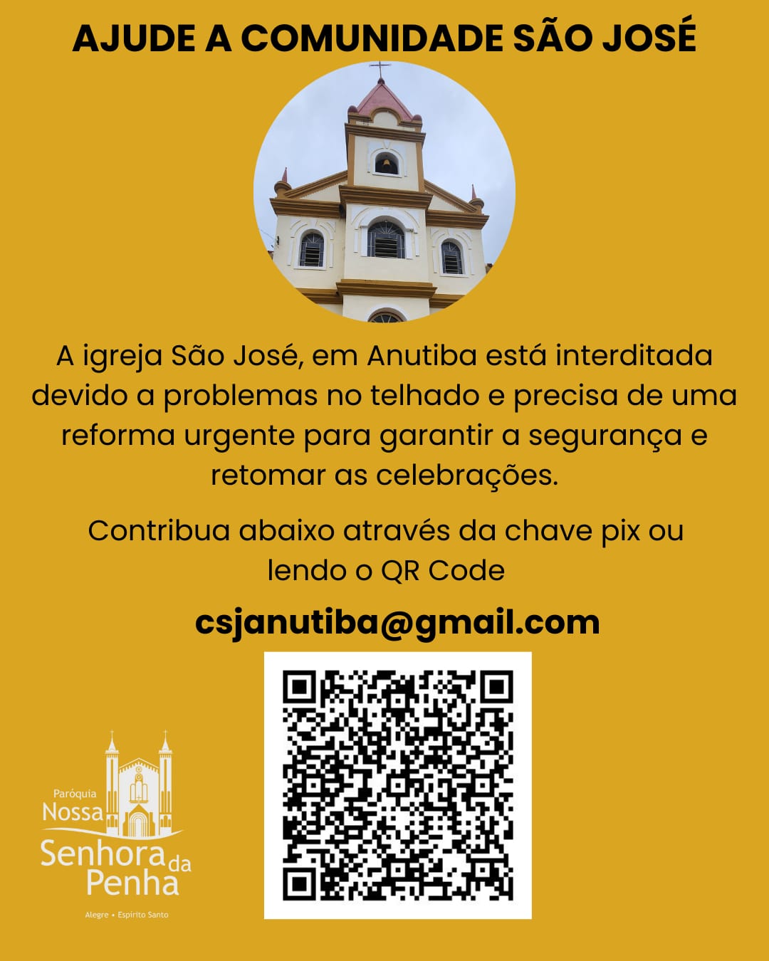 A comunidade de São José está recebendo doações via Pix para custear as obras de restauração do telhado da igreja.
