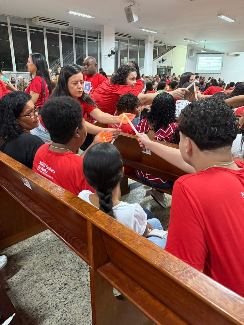 A primeira crisma do fim de semana aconteceu na sexta-feira, 16 de maio,, às 18h, na Comunidade Nossa Senhora Aparecida, em Castelo, pertencente à Paróquia Nossa Senhora da Penha. Na ocasião, adultos da comunidade receberam o sacramento em um clima de grande emoção e espiritualidade.