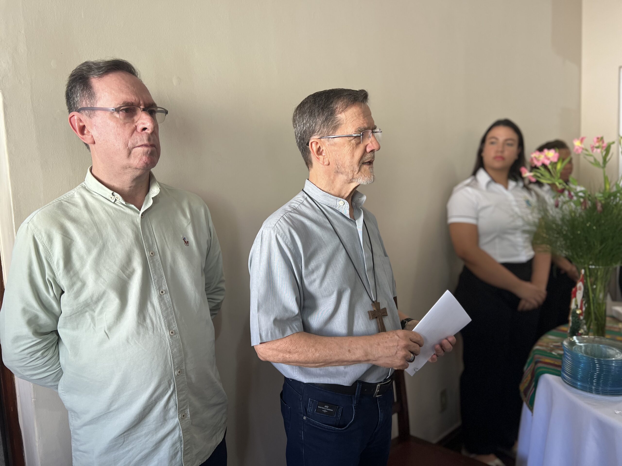 Em seguida, padre Antônio Tatagiba, responsável pela Cúria, partilhou uma reflexão inspirada em São Bento, ressaltando que o santo, conhecido por sua espiritualidade, também é referência importante para a organização e gestão comunitária. O vigário destacou que o espírito beneditino — marcado pelo equilíbrio entre trabalho e oração — deve continuar orientando as ações da equipe.