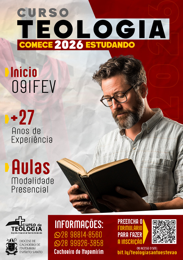 As inscrições para o Curso Livre de Teologia da Escola Diaconal Santo Estevão estão abertas e reforçam o compromisso permanente da Diocese de Cachoeiro de Itapemirim com a formação intelectual, espiritual e pastoral de seus fiéis. A iniciativa amplia o acesso ao estudo sistemático da Teologia, fortalecendo a vida e a missão da Igreja nas paróquias e comunidades.
