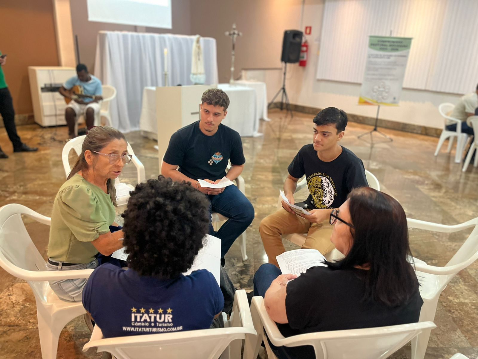 Nos trabalhos em grupo, os participantes refletiram sobre a presença dos jovens nas comunidades, os desafios da evangelização das novas gerações e propostas práticas para fortalecer o acolhimento e o envolvimento juvenil nas CEBs.