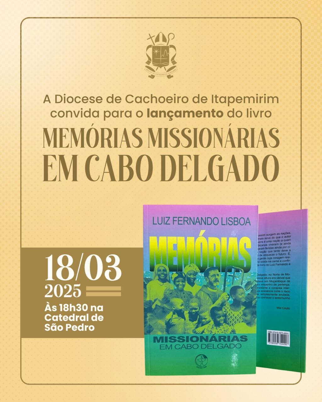 O Bispo da Diocese de Cachoeiro de Itapemirim, Dom Luiz Fernando Lisboa, lança nesta terça-feira, 18 de março, o livro “Memórias Missionárias em Cabo Delgado (2001-2021)”, publicado pela Edições CNBB, uma obra que explora um testemunho de fé e compromisso para com os mais pobres. O livro será lançado na Catedral de São Pedro, às 18h30, em Cachoeiro de Itapemirim.