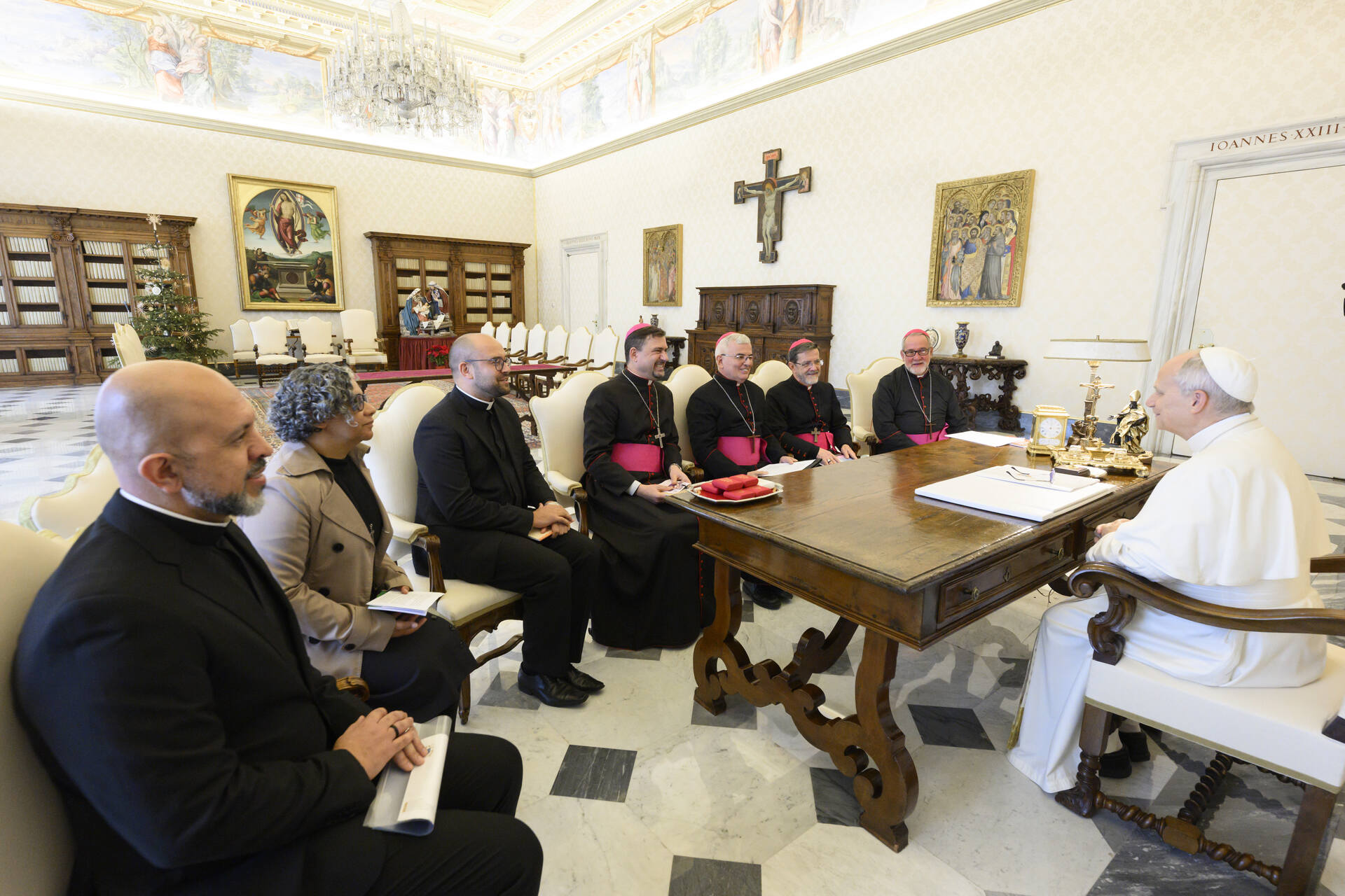 Na sexta-feira anterior à audiência papal, em 9 de janeiro, os bispos participaram de um encontro no Dicastério para o Desenvolvimento Humano Integral. Dom Luiz relatou que a Comissão foi oficialmente apresentada ao organismo vaticano. “Nós nos apresentamos como Comissão. Primeiro, o cardeal Michael Czerny fez uma acolhida para todos os membros, falou sobre o trabalho do Dicastério”, afirmou. Durante a visita, os participantes assistiram a um vídeo institucional sobre as ações do Dicastério junto a populações vulneráveis em diversas partes do mundo. “Vimos tudo aquilo que o Dicastério promove pelo mundo inteiro, as pessoas e instituições que ajuda. E depois eles nos ouviram”, acrescentou.