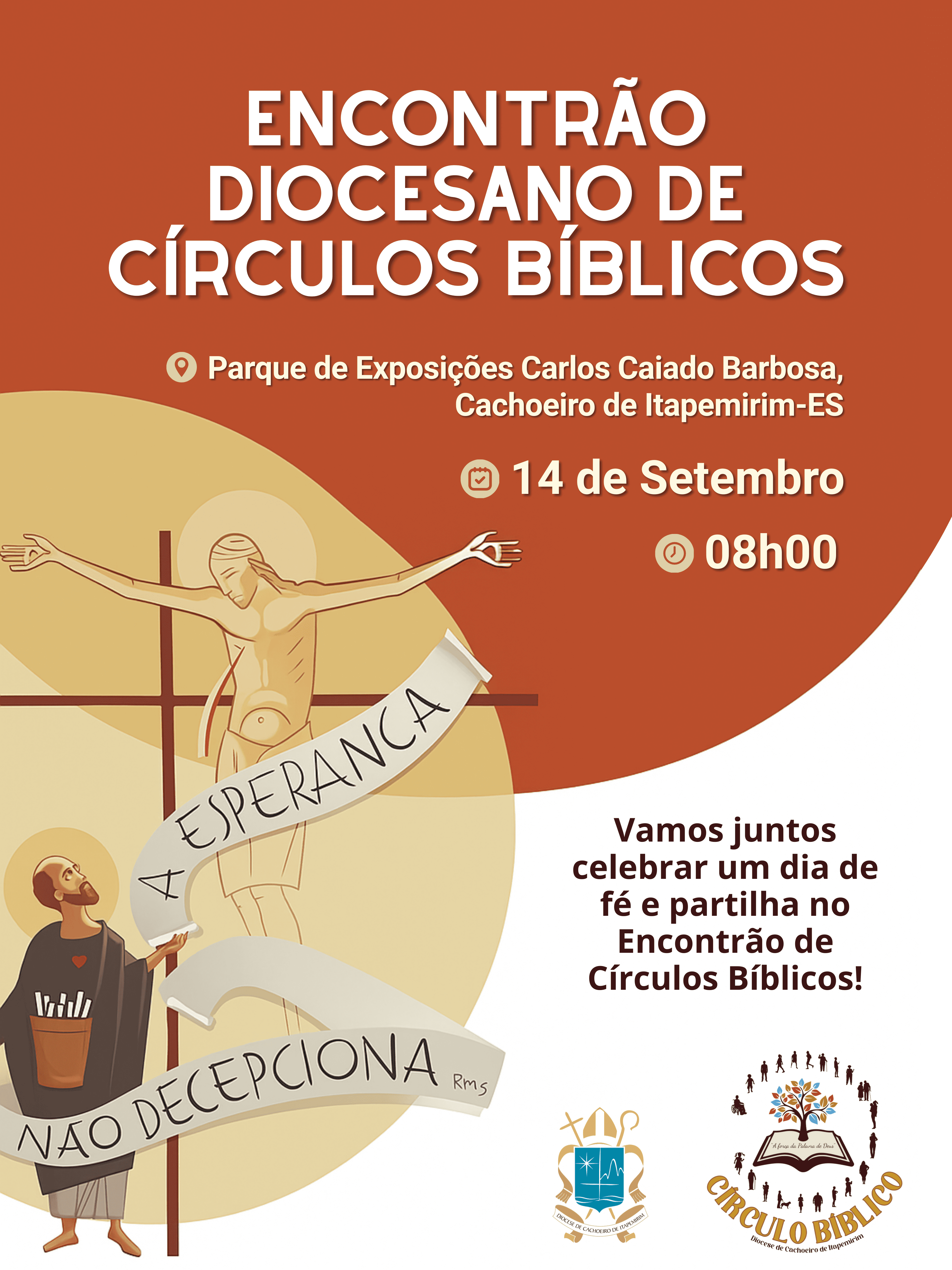 Neste domingo, 14 de setembro, a Diocese de Cachoeiro de Itapemirim realizará o Encontrão Diocesano de Círculos Bíblicos, um grande momento de comunhão, partilha e celebração da fé, no Parque de Exposição Carlos Caiado Barbosa, em Cachoeiro de Itapemirim, a partir das 8h da manhã.