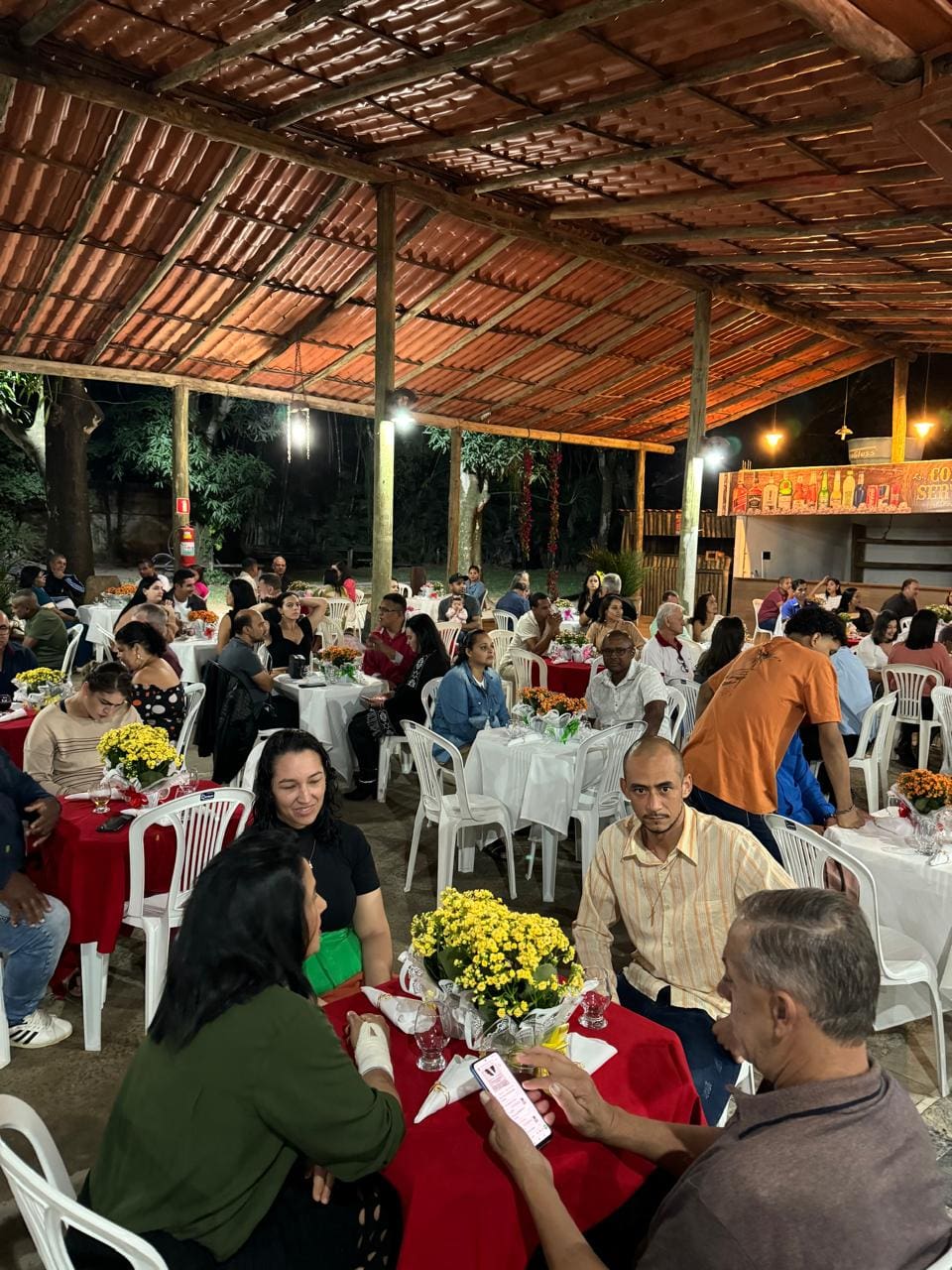 Ao final do jantar, todas as mulheres receberam uma rosa dos seus conjunges.