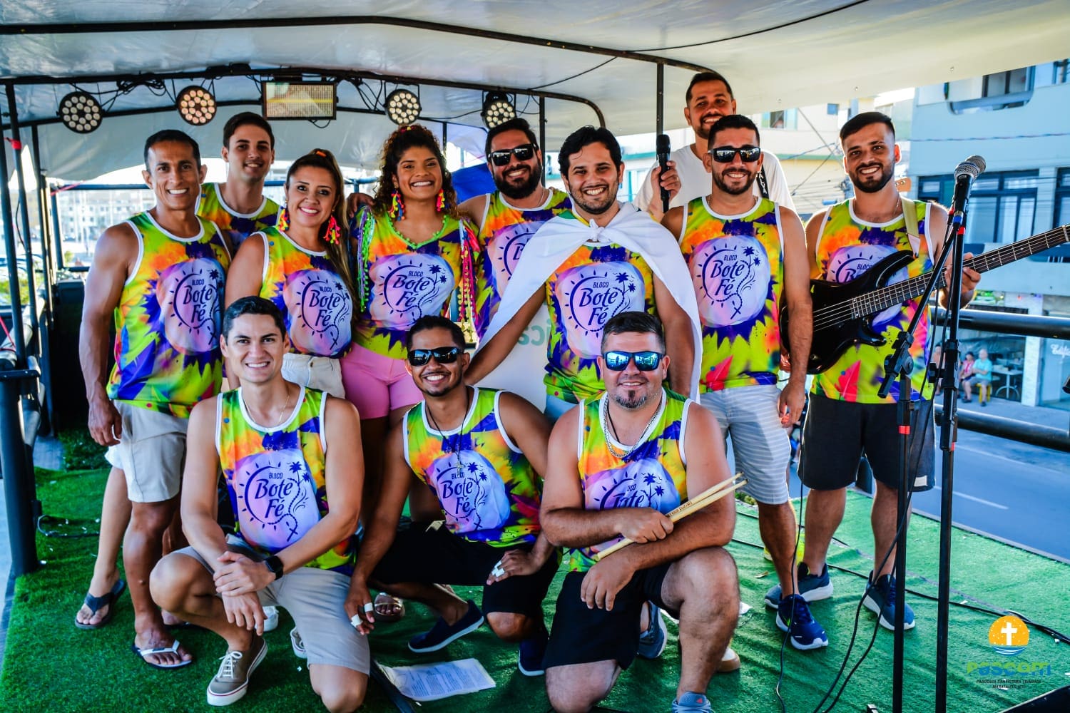 “Bom é louvar ao nosso Deus, bom é louvar, bom é louvar. E quando ele vem, vem, vem, o teu Espírito fica aqui. E quando ele vem, vem, vem, nos enche de alegria, amor e paz”. Misturando fé e folia, a música “Bom é Louvar” da cantora católica Jake, foi uma das dezenas de clássicos que animaram o Bloco Bote Fé, tradicional bloco de rua católico da cidade de Marataízes, no litoral sul.