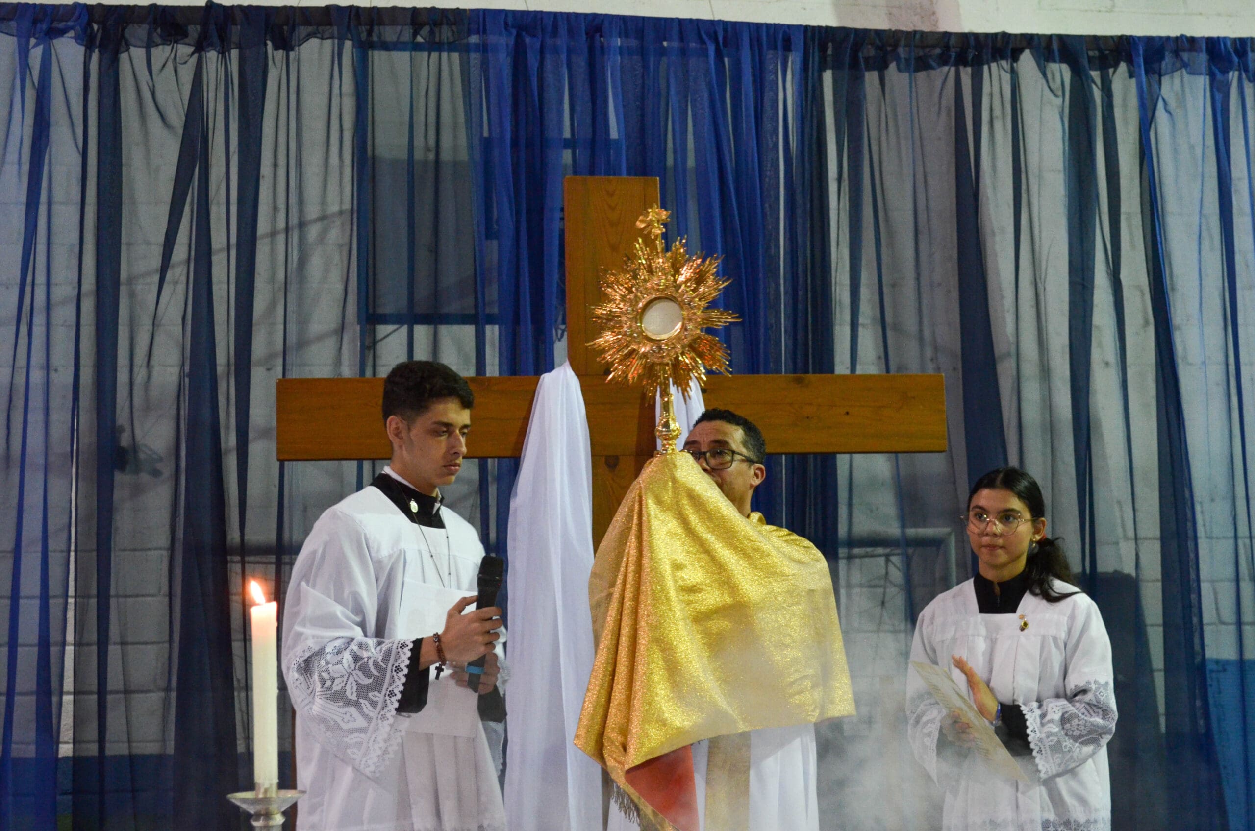 Padre josé Carlos Ferreira da Silvia, pároco local, presidiu a Santa Missa e conduziu a Adoração ao Santíssima Sacramento.