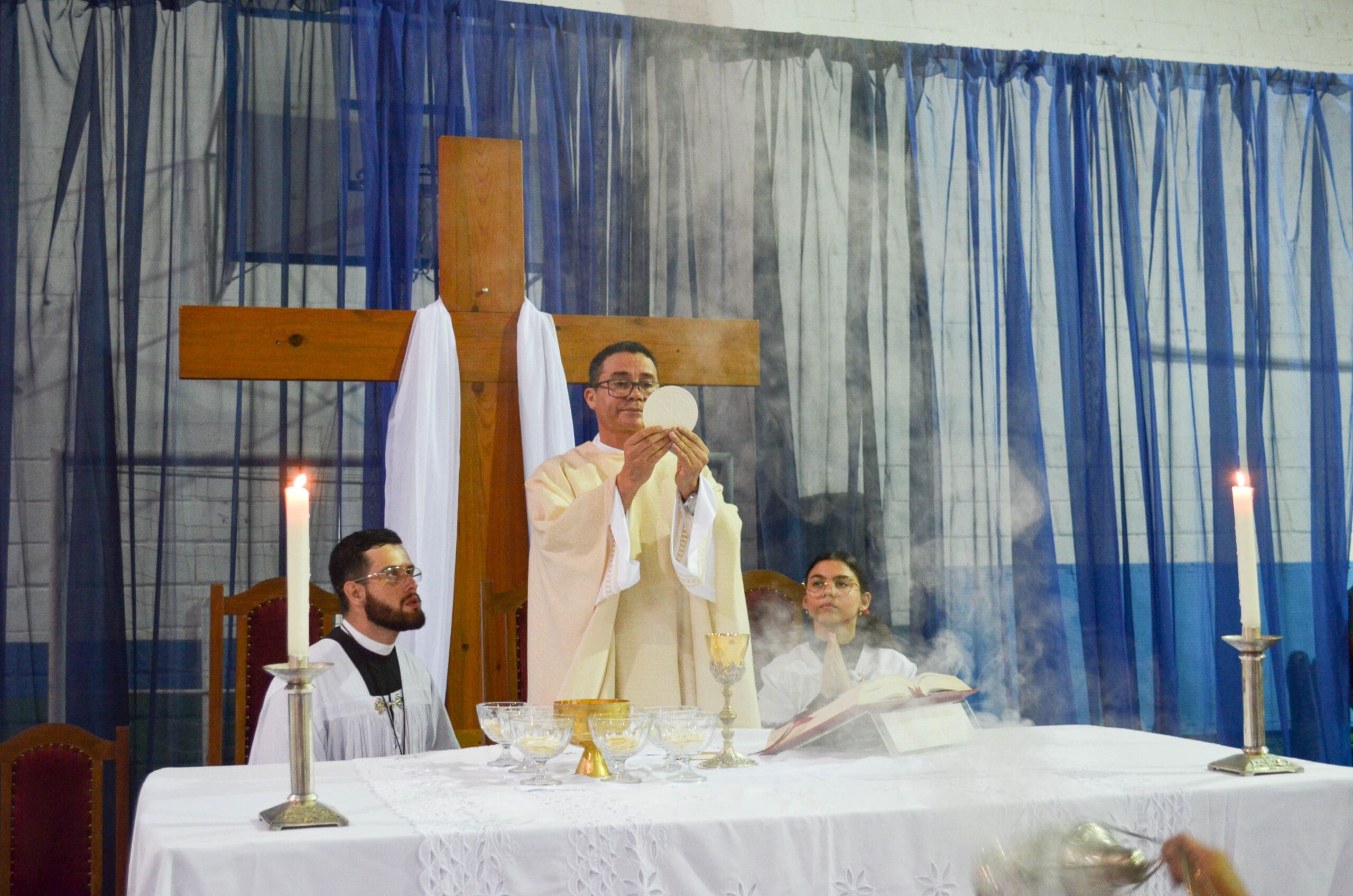 Padre josé Carlos Ferreira da Silvia, pároco local, presidiu a Santa Missa e conduziu a Adoração ao Santíssima Sacramento.