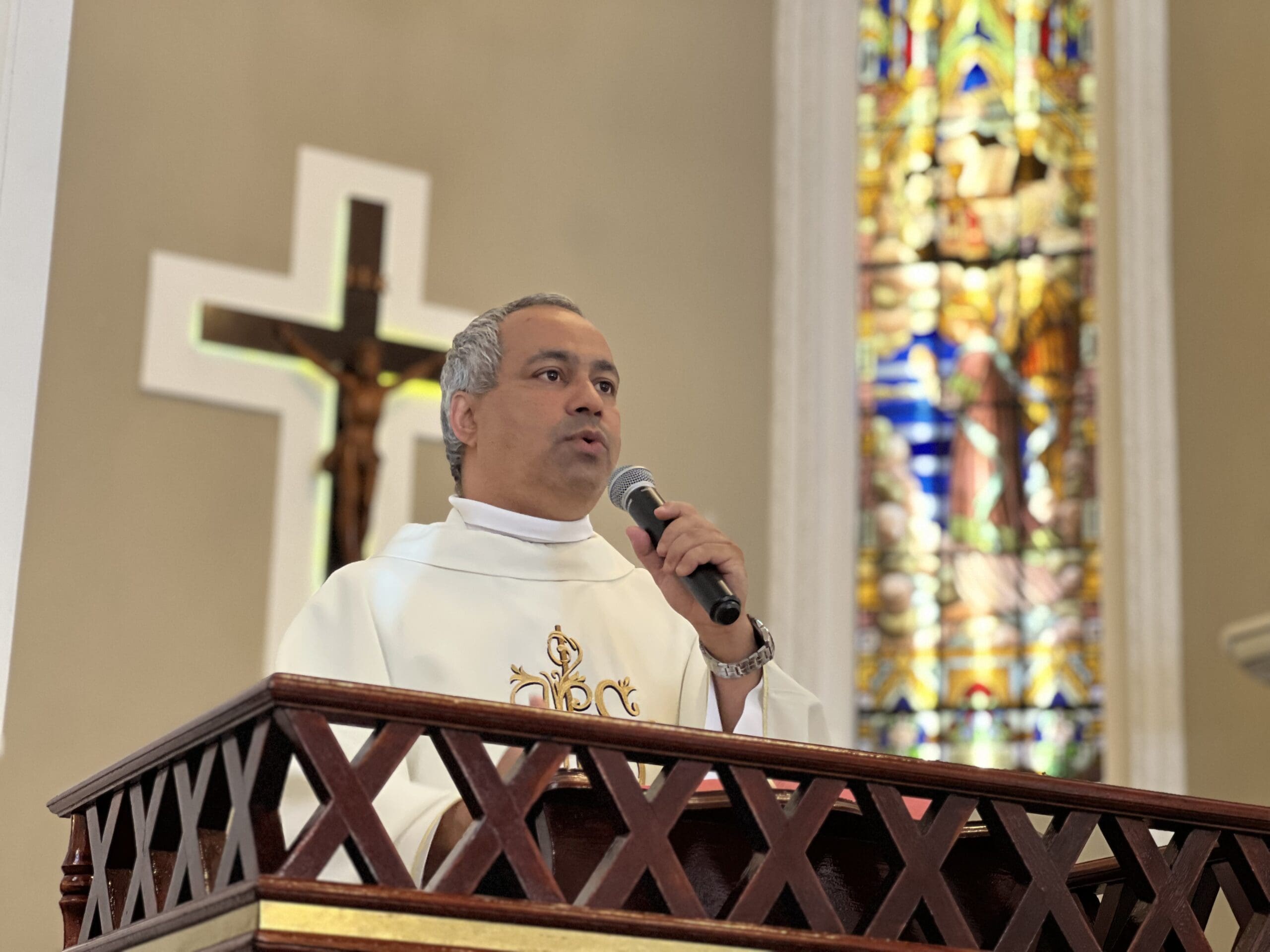 Durante a homilia, padre Enildo destacou o exemplo de entrega e confiança de Santa Teresinha: