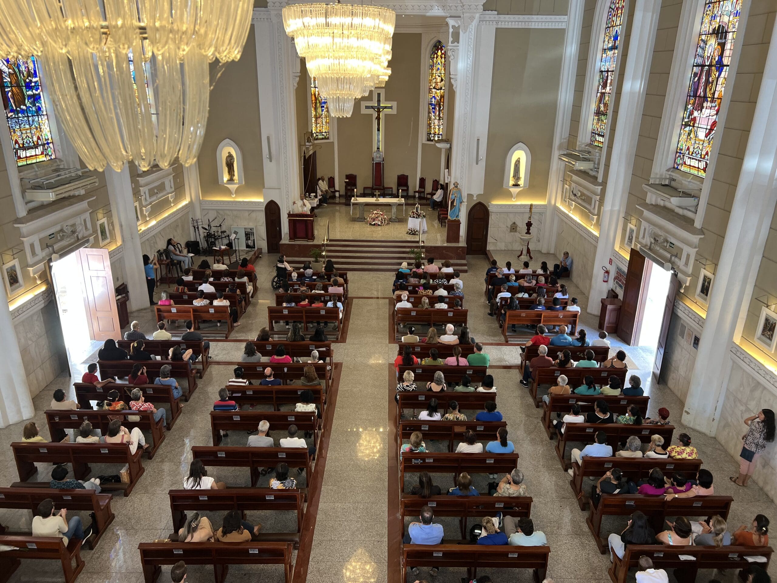 Na Catedral de São Pedro, no Centro de Cachoeiro, uma Celebração Solene reuniu fiéis ao meio-dia e foi presidida pelo padre Enildo Genésio de Souza, diretor da Rádio Diocesana FM 95,7. A celebração marcou as homenagens à padroeira da emissora e do Clube da Fé, reforçando a devoção à santa carmelita que, com simplicidade e profundo amor a Deus, se tornou referência espiritual para a Igreja.