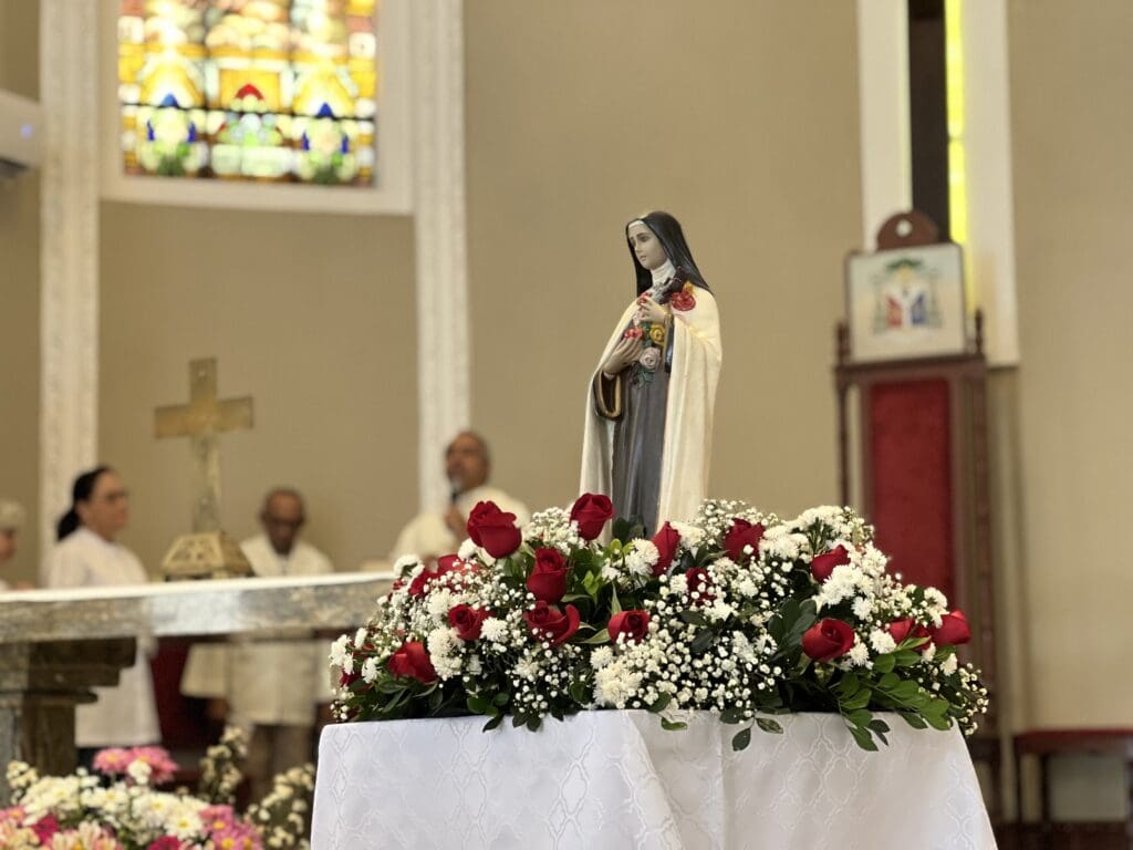 A Igreja Católica celebra nesta quarta-feira, 1º de outubro, a memória de Santa Teresinha do Menino Jesus, padroeira das missões e doutora da Igreja. Na Diocese de Cachoeiro de Itapemirim, a data foi marcada por diversas homenagens, realizadas na Catedral de São Pedro, no Carmelo São José e nas Comunidades Eclesiais de Base dedicadas à santa.