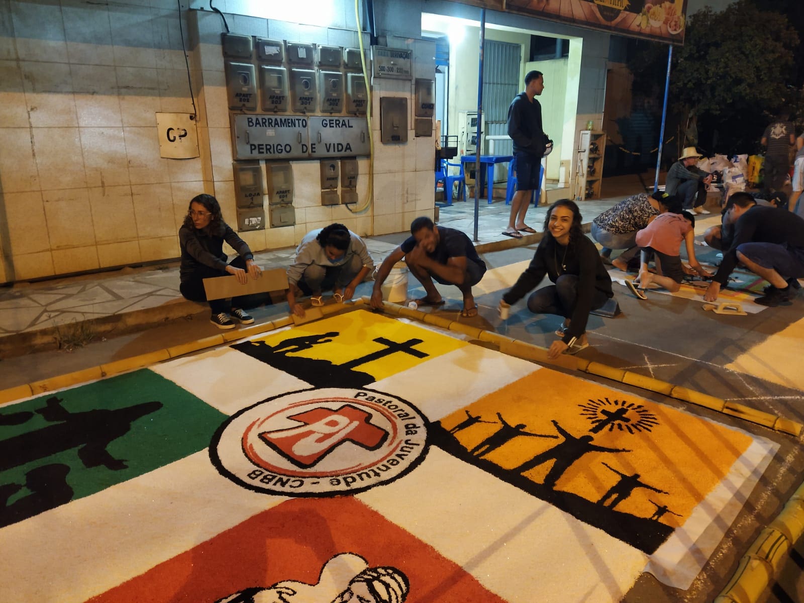 “Nossas 21 comunidades se uniram e cada qual confeccionou 14 m2 de tapete, envolvendo jovens e adolescentes, num trabalho de unidade e fé”, explicou, por nota, a Pastoral da Comunicação (Pascom). Considerado um dos maiores da cidade, a confecção dos tapetes e a Celebração Eucarística, levou às ruas da cidade centenas de pessoas. “A paróquia São Filipe nos seus 30 anos de existência mantém a tradição de confeccionar o Tapete de Corpus Christi, e esse ano não foi diferente.”
