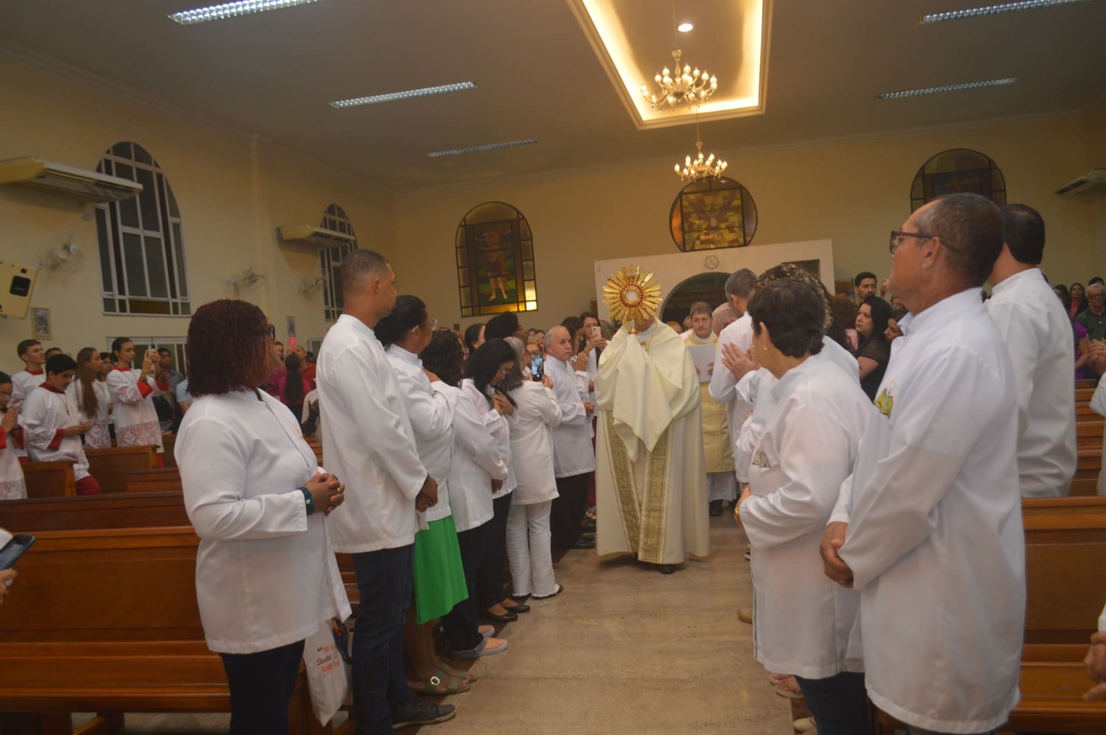 A celebração de Corpus Christi realizada na na quinta-feira, 29 de maio, na Paróquia São Filipe, no bairro Aeroporto, em Cachoeiro de Itapemirim, contou com a participação de centenas de católicos, na missa, procissão e na confecção dos famosos tapetes coloridos.