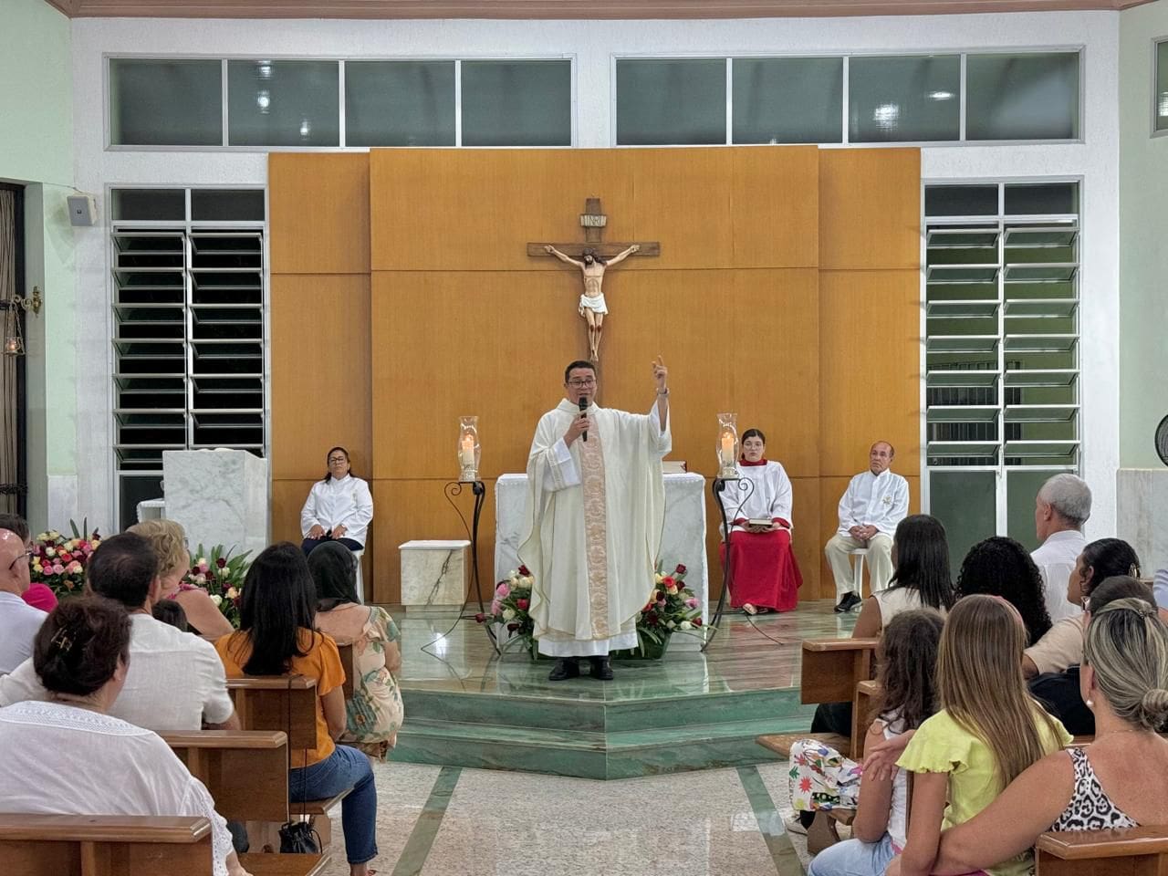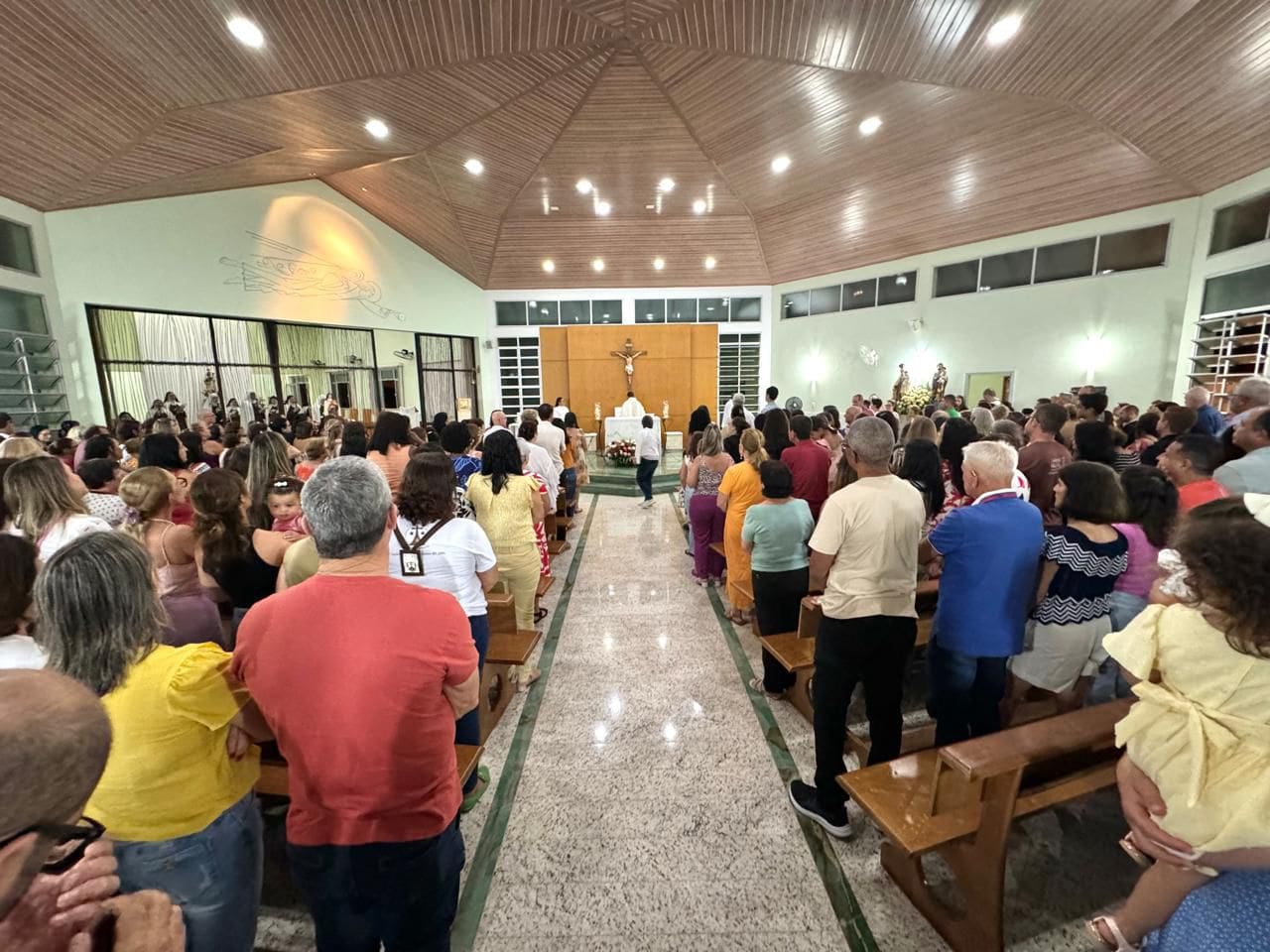 A missa, presidida por José Carlos Ferreira da Silva, Vigário Episcopal para Comunicação da Diocese de Cachoeiro, iniciou por volta das 19h30 e apresentou lotação dentro da capela e fora dela. A celebração foi marcada por profundas reflexões e homenagens. Em sua homilia, Padre José Carlos conta que a santa sempre buscou a simplicidade. Na pequenez fez escolhas e sempre seguiu por aquilo que ela sentia. “Jesus nos convida a uma vida de simplicidade e entrega, destacando que os mistérios do Reino são revelados aos ‘pequeninos’. Esse ensinamento encontra eco profundo na vida de Santa Teresinha do Menino Jesus, Doutora da Igreja, cuja espiritualidade da ‘pequena via’ nos mostra como viver essa passagem de maneira concreta”, disse.