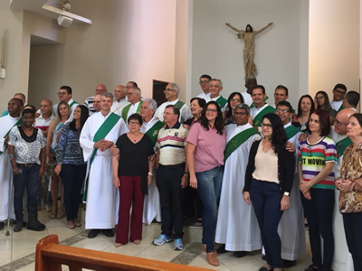 O encontro teve como tema o documento 107 da CNBB, cujo título é “Iniciação à vida cristã: itinerário para formar discípulos missionários”, e a participação de Diáconos Permanentes e de suas esposas.