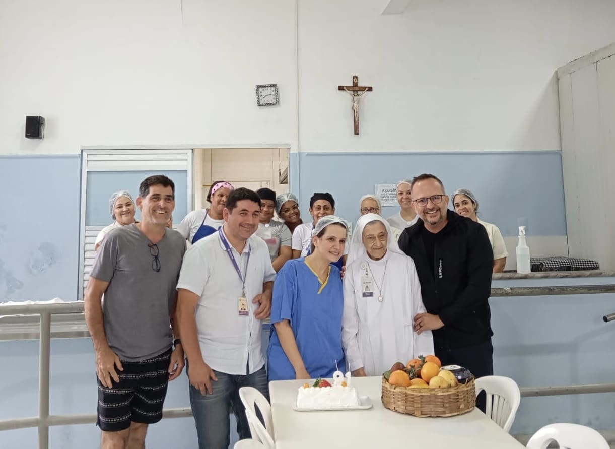 “Estou comemorando 91 anos com muita alegria entre amigos e com a benção do padre Evaldo, estou muito feliz”, Expressou a freira que apesar da idade, exala lucidez e continua visitando pessoas internadas e funcionários da unidade, diariamente.
