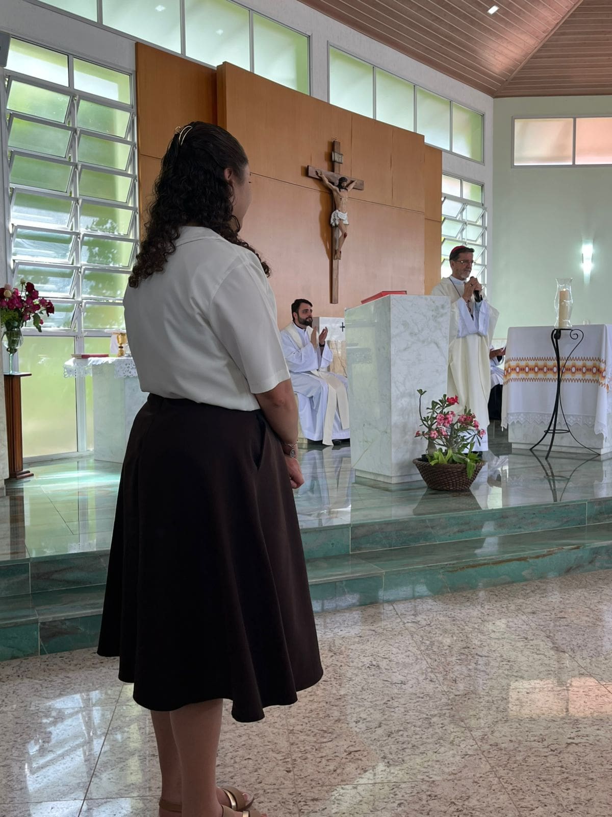 A cerimônia teve início com a celebração da Santa Missa, presidida pelo bispo diocesano, Dom Luiz Fernando Lisboa CP, e contou com a presença de familiares e amigos de Simone, que acompanharam com emoção esse importante passo em sua caminhada de discernimento vocacional.