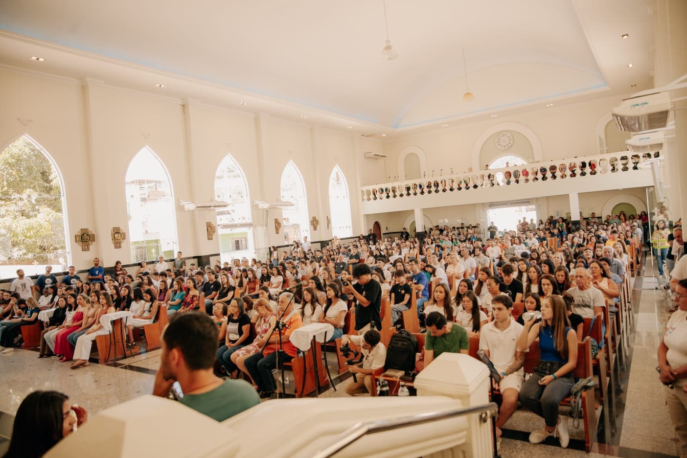 O encontro que reuniu centenas de jovens para um dia repleto de espiritualidade, integração e momentos de reflexão, foi iniciado com a Santa missa celebrada pelo pároco local, padre Walter Luiz Altoé. “Uma belíssima celebração onde em sua homilia enfatizou sobre a luta contra a tentação e o pecado e a importância de colocar Jesus no centro de nossas vidas”, destacou Lucas dos Santos, coordenador paroquial do ministério jovem.