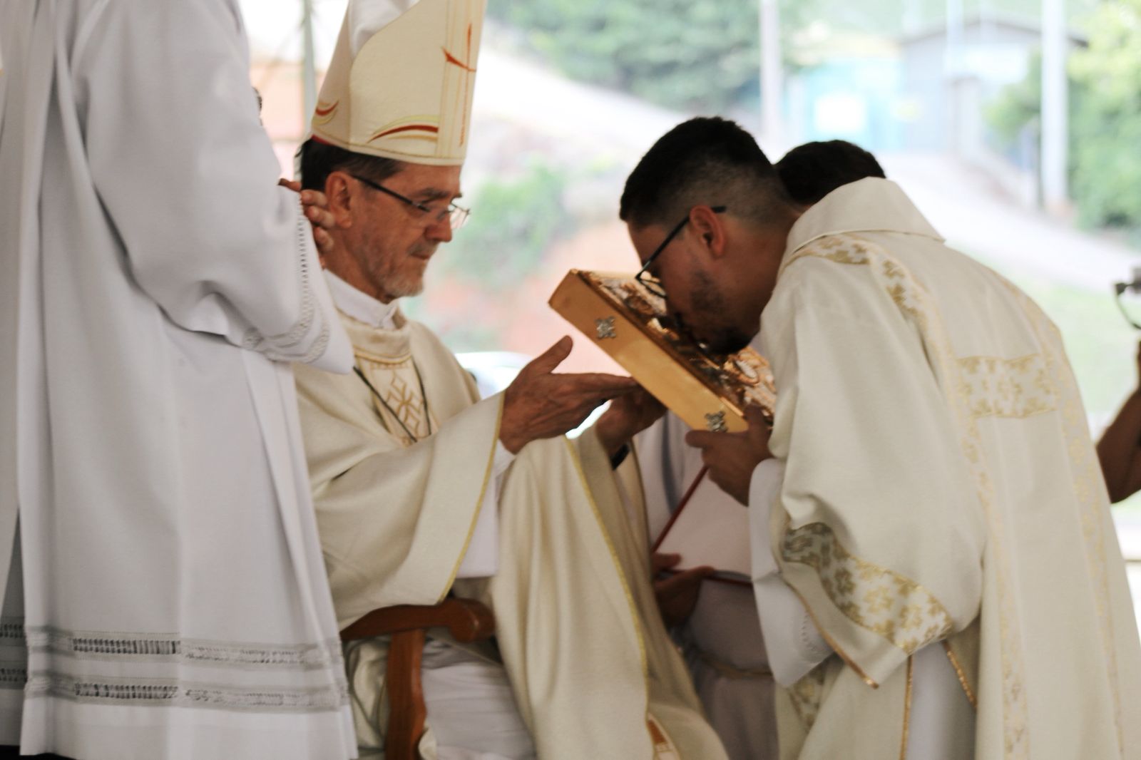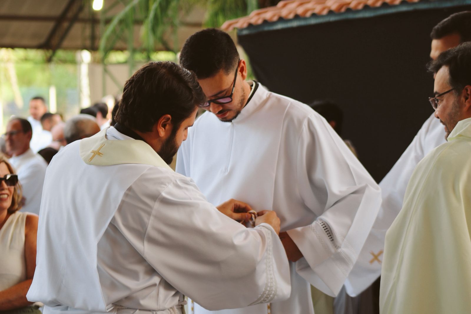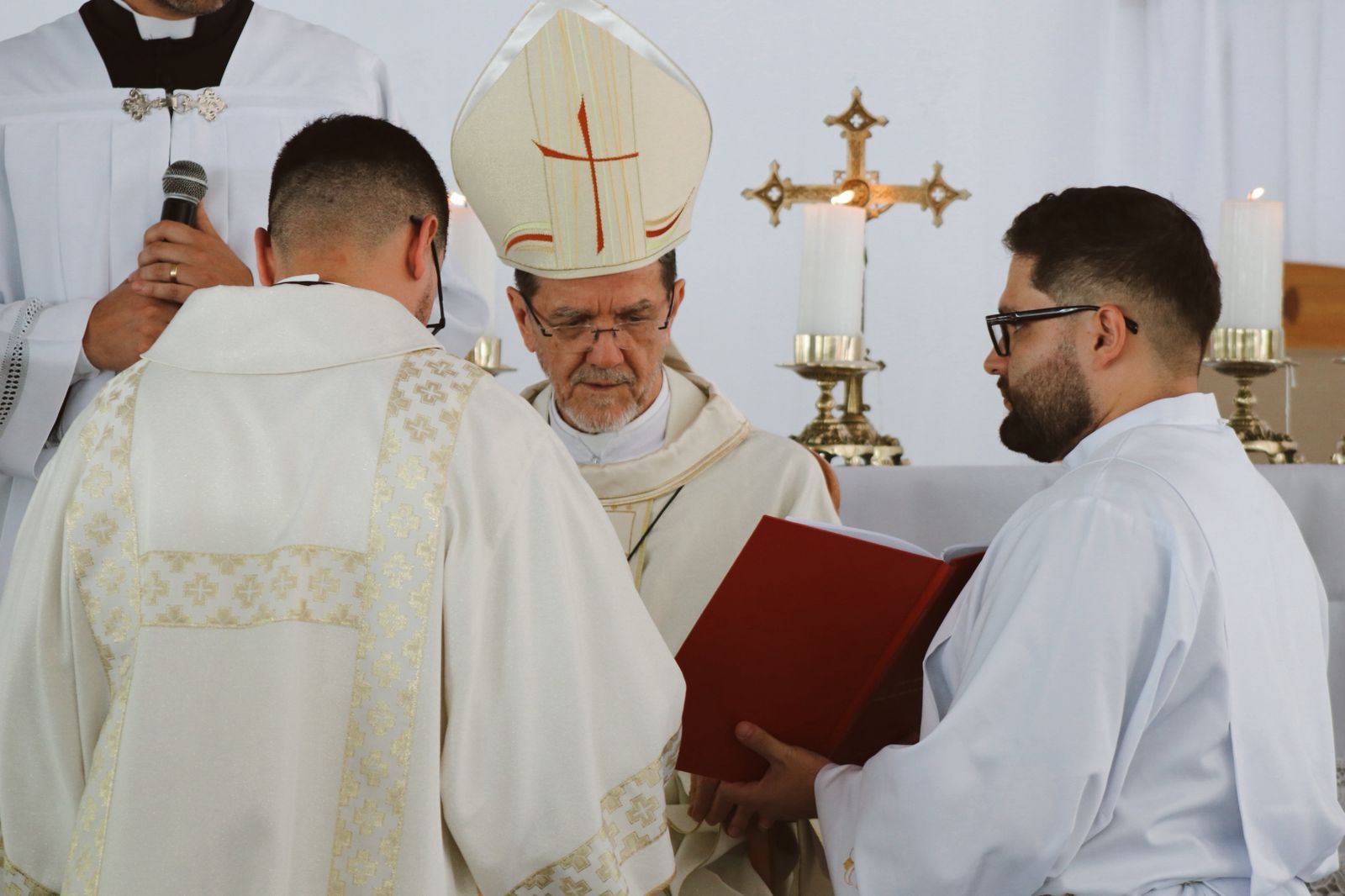 Já ordenado, Luan foi revestido com a estola e a dalmática, paramentos próprios do novo ministério, e recebeu das mãos do bispo o Livro dos Evangelhos, sinal de sua missão de anunciar, proclamar e viver a Palavra de Deus.