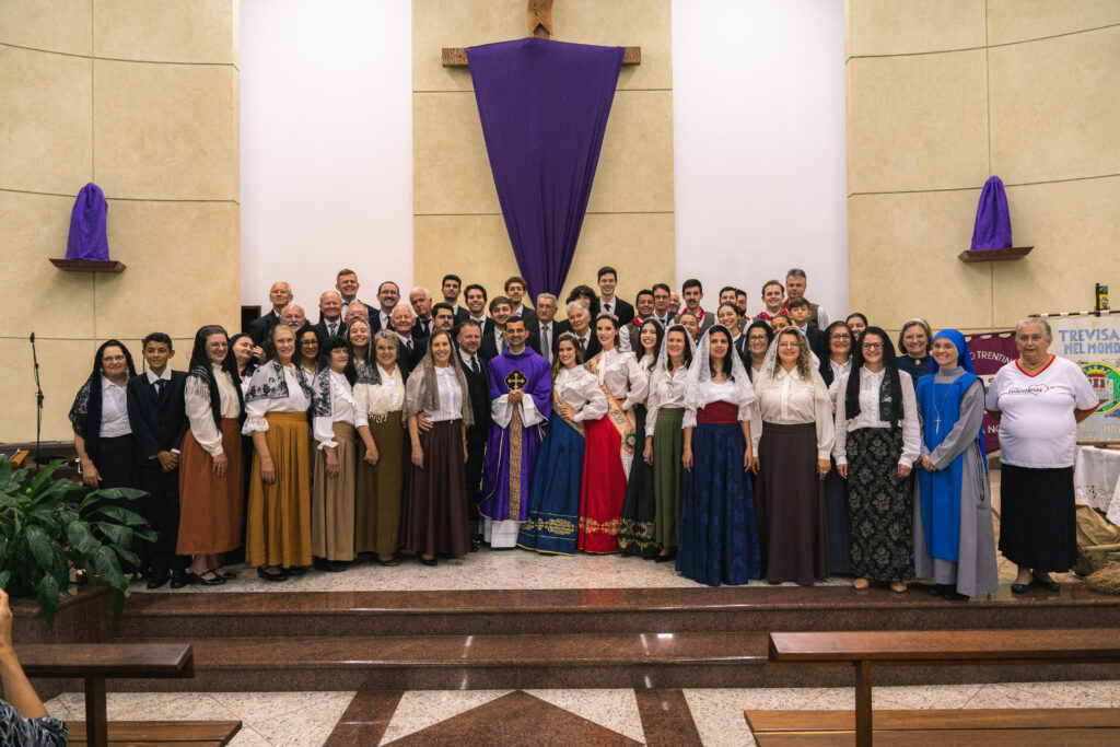 Vestidos com trajes típicos italianos, os ítalo-descendentes coloriram de verde, branco e vermelho o corredor central da matriz. Durante o ofertório, a história da colonização foi contada através de equipamentos e ferramentas usados pelos imigrantes e, ofertados no altar.