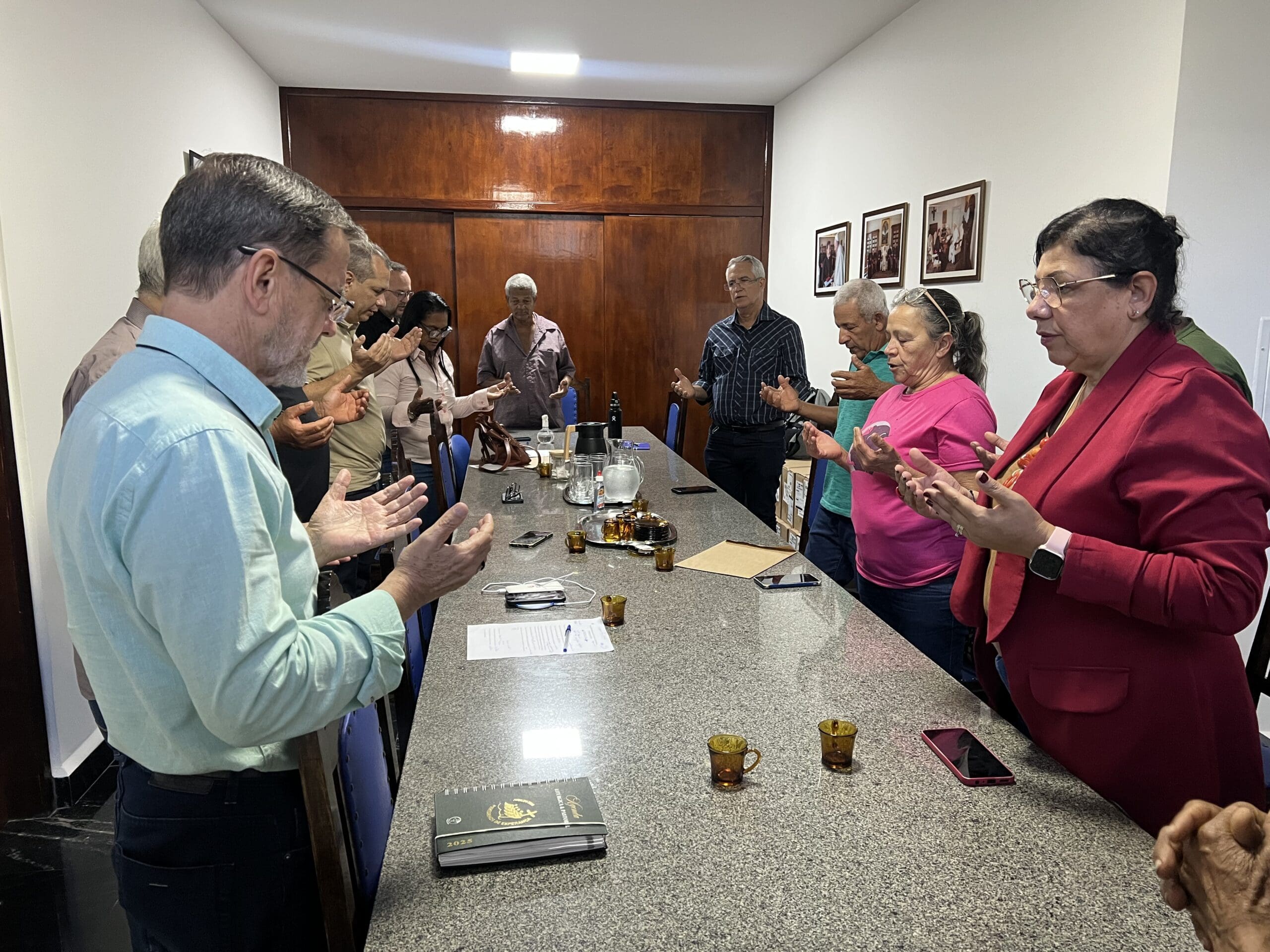 Na tarde da última quinta-feira, 7 de agosto, a Diocese de Cachoeiro de Itapemirim promoveu um importante encontro reunindo representantes do Instituto Nacional de Colonização e Reforma Agrária (INCRA), lideranças dos assentados do Nova Safra, Secretarias de Agricultura das prefeituras de Cachoeiro e Itapemirim e Itapemirim, além de membros do Vicariato Episcopal para Ação Social. Foi o segundo encontro intermediado pela Igreja, objetivando dar continuidade ao diálogo interinstitucional iniciado em 2024, buscando avanços nas negociações e reivindicações dos moradores do assentamento, existente há 28 anos, localizado entre os dois municípios.