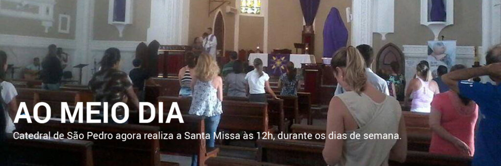 Desde a última segunda-feira, 23, a Paróquia São Pedro (Catedral), realiza a Santa Missa às 12h, com o intuito de oferecer um horário alternativo para os paroquianos.